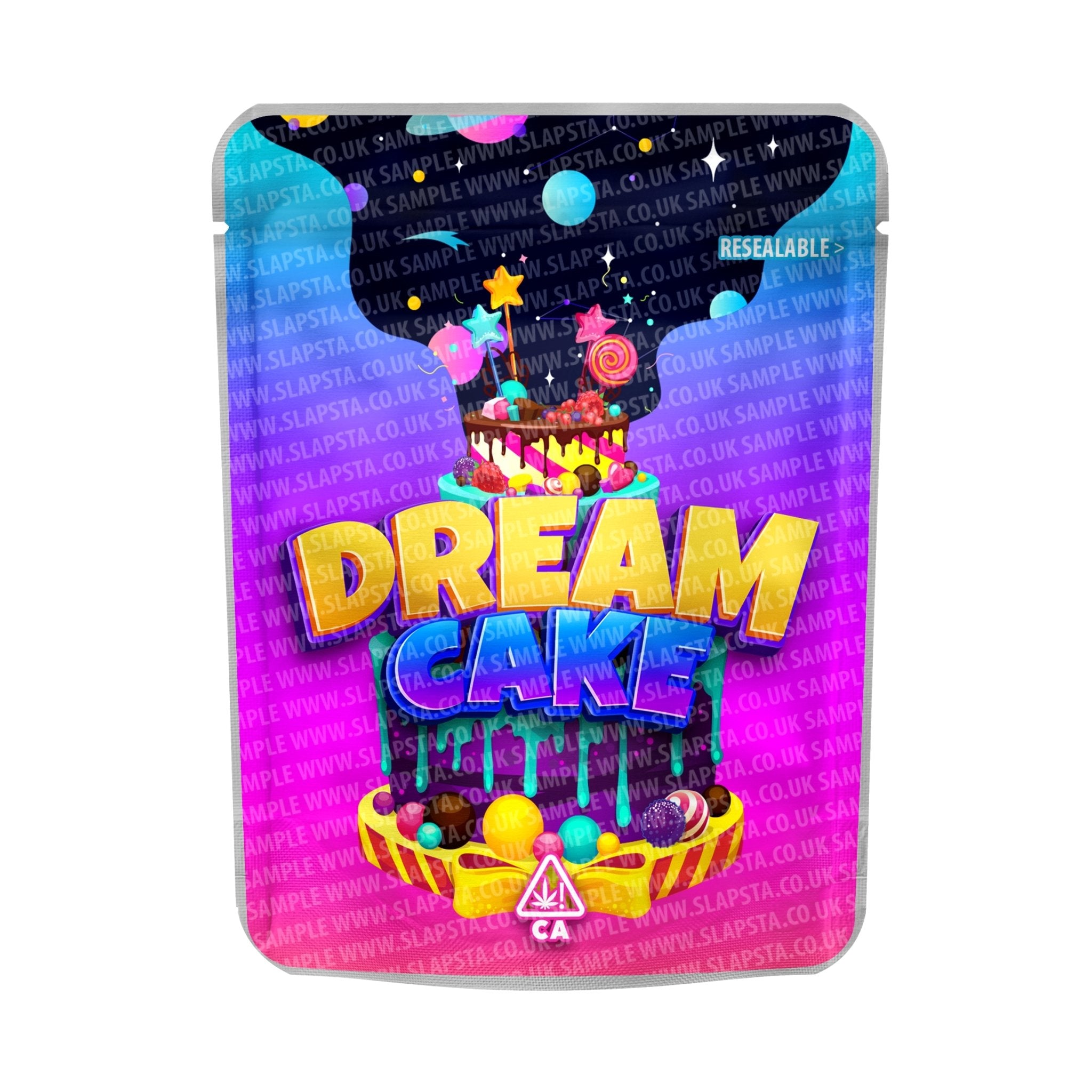 Resealable, smell-proof mylar pouches, with Dream Cake vinyl sticker pre-applied. Available in 3.5grams, 7grams, 14grams, and 28gram sizes, with child-resistant option.