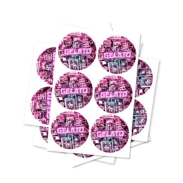 High-quality Gelato gloss vinyl circular stickers. Please choose the size and quantity you require from the drop-down menu.