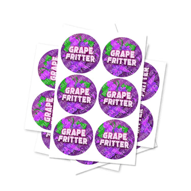 High-quality Grape Fritter gloss vinyl circular stickers. Please choose the size and quantity you require from the drop-down menu.