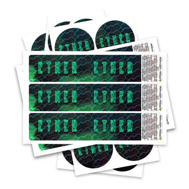 Ready-made Ether strain labels, available to fit our JAR and TAMPER STRIP POT Range. If you require your labels made to a certain size, please contact us. For bespoke designs, please check out our design section.
