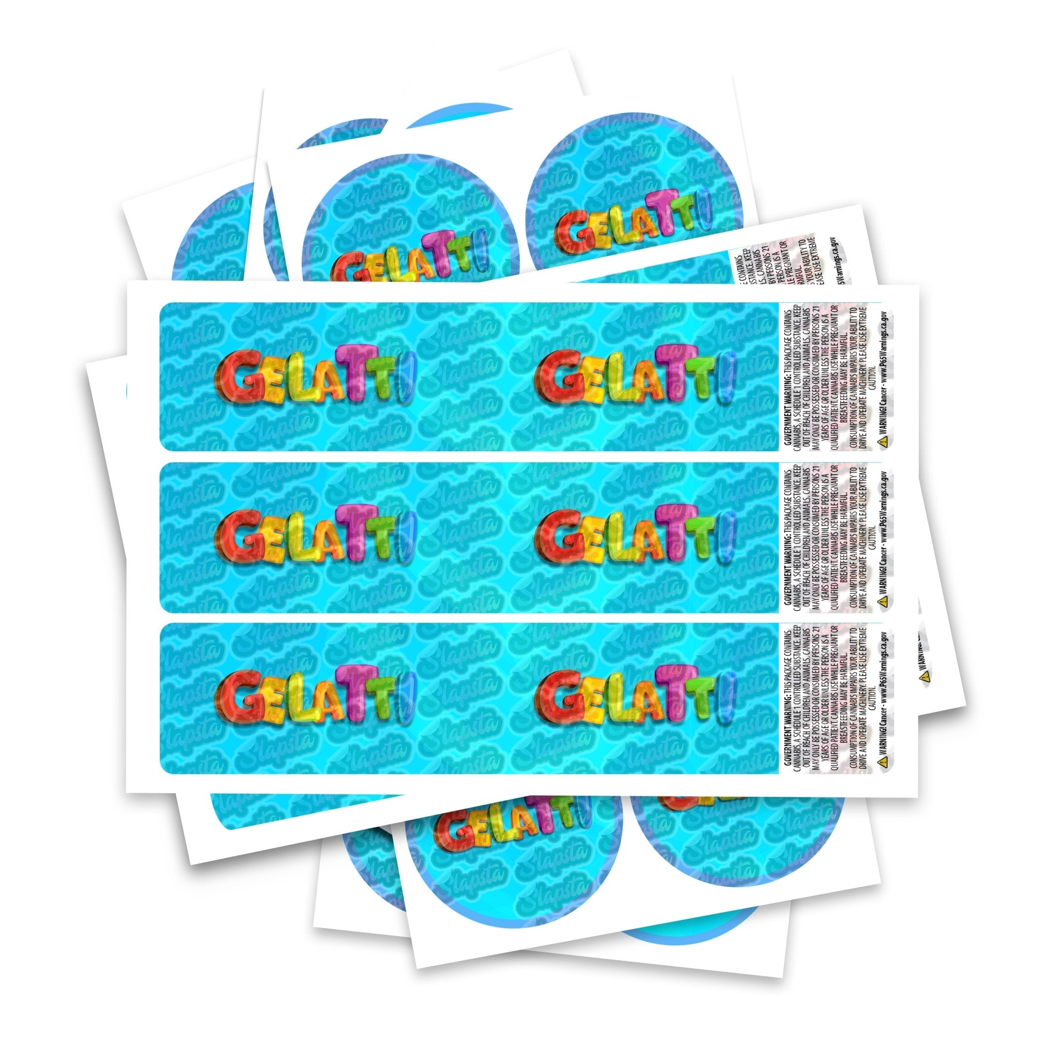Ready-made Gelatti strain labels, available to fit our JAR and TAMPER STRIP POT Range. If you require your labels made to a certain size, please contact us. For bespoke designs, please check out our design section.