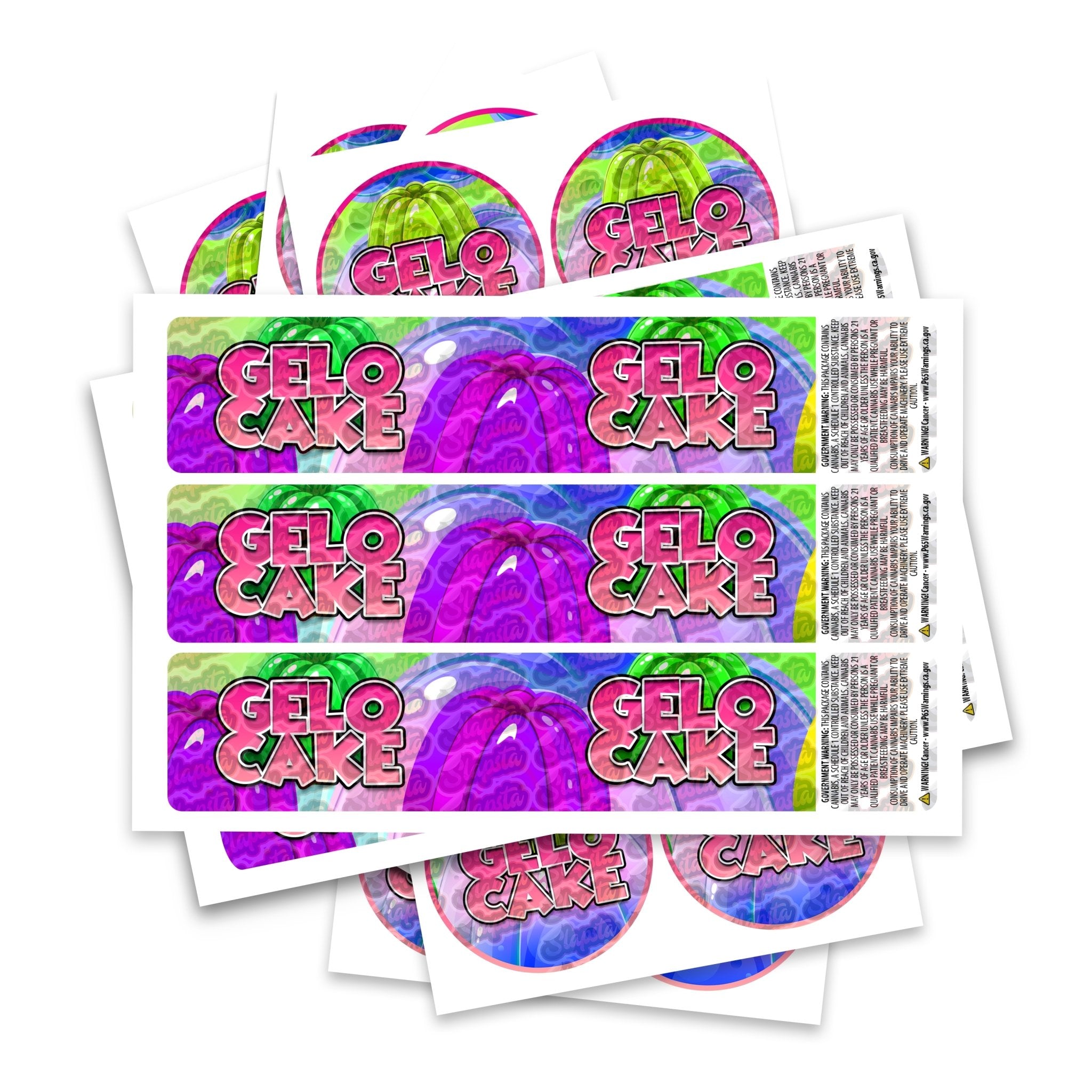 Ready-made Gelo Cake strain labels, available to fit our JAR and TAMPER STRIP POT Range. If you require your labels made to a certain size, please contact us. For bespoke designs, please check out our design section.