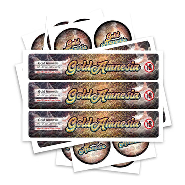 Ready-made Gold Amnesia strain labels, available to fit our JAR and TAMPER STRIP POT Range. If you require your labels made to a certain size, please contact us. For bespoke designs, please check out our design section.