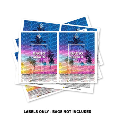 Ready-made Bacio Gelato mylar cover labels, available to perfectly fit our MYLAR BARRIER POUCHES