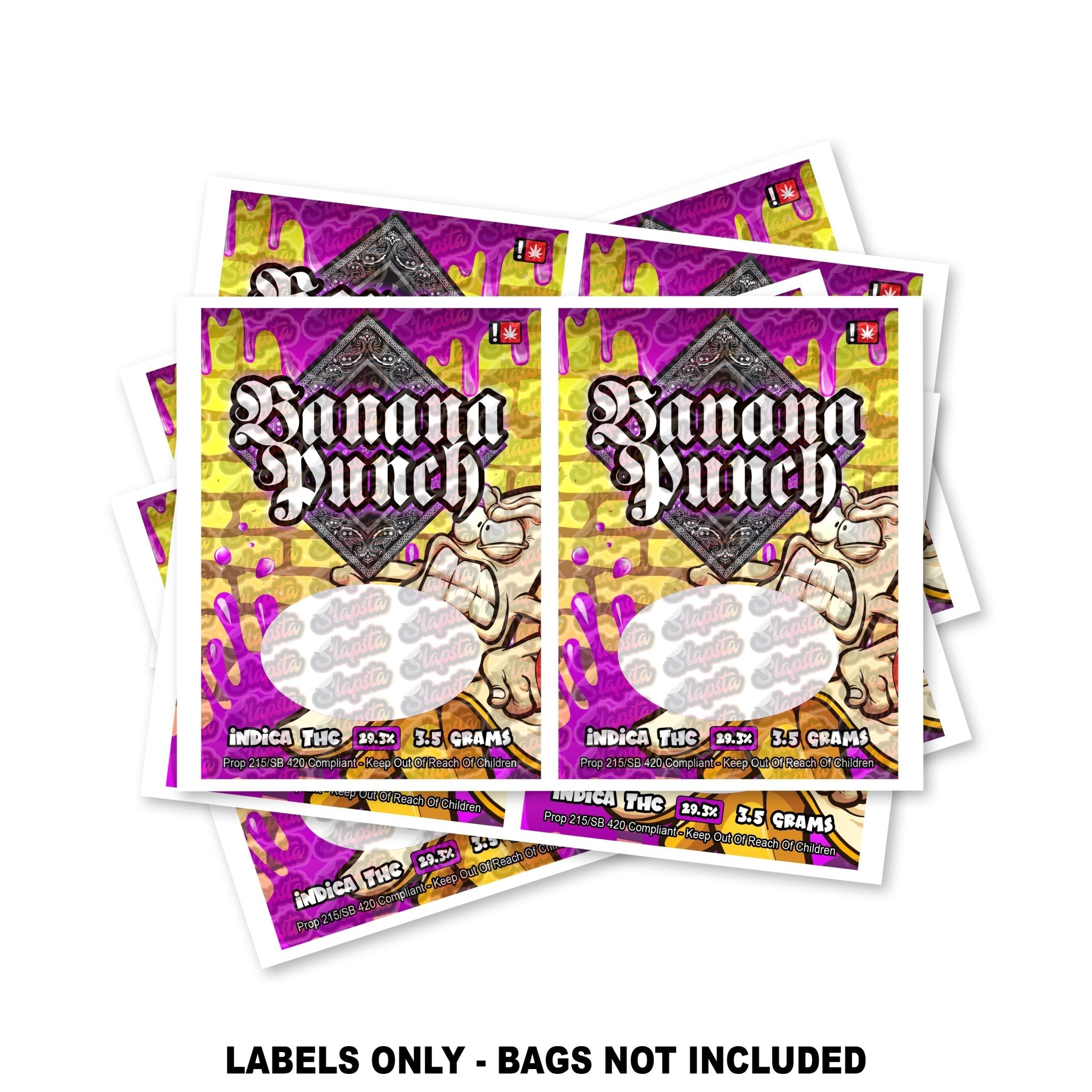 Ready-made Banana Crack mylar cover labels, available to perfectly fit our MYLAR BARRIER POUCHES