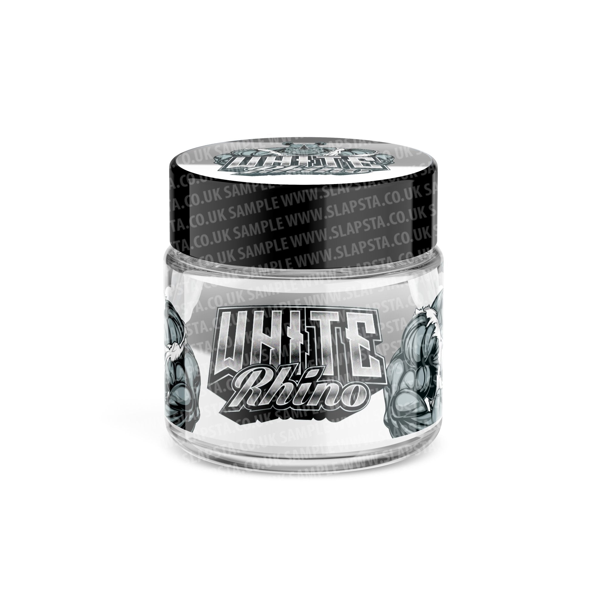White Rhino Glass Jars Pre-Labeled