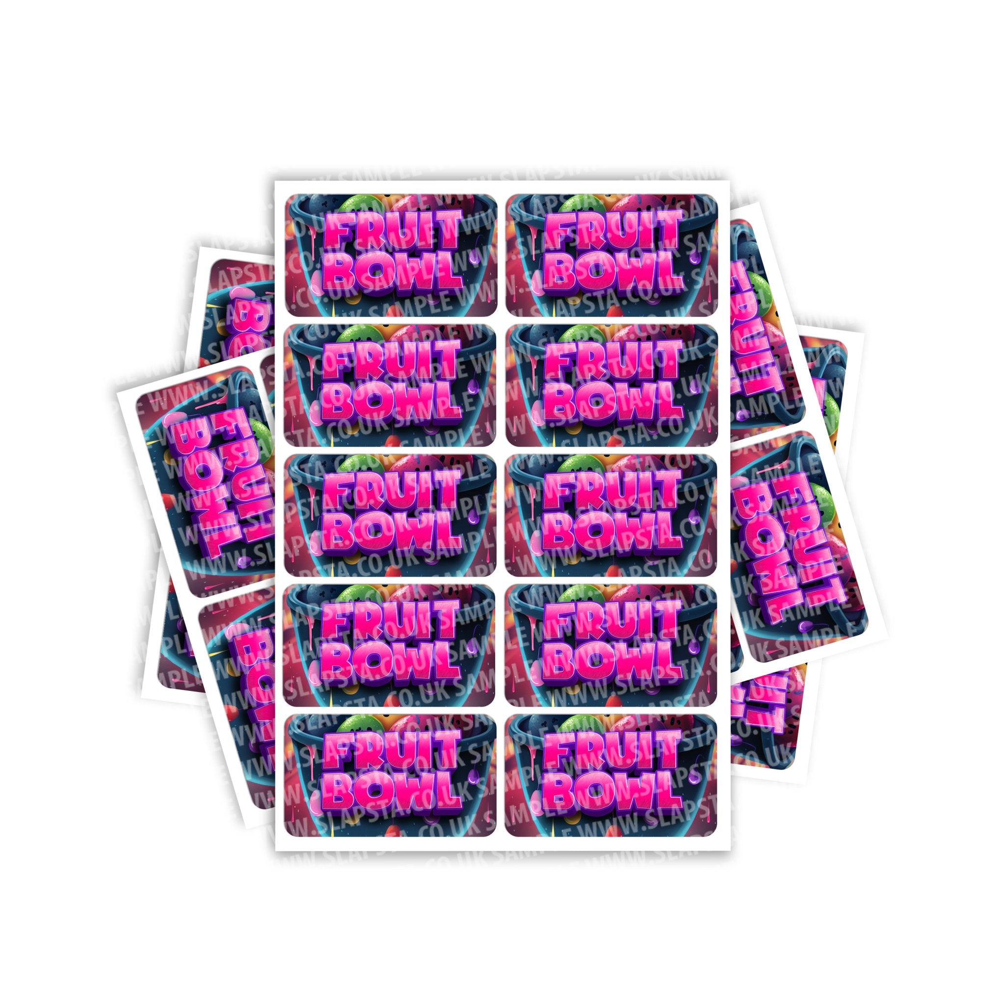 Fruit Bowl gloss vinyl sticker labels. Please choose the size and quantity you require. For help sizing, please view the size guide image or use the measurements provided.