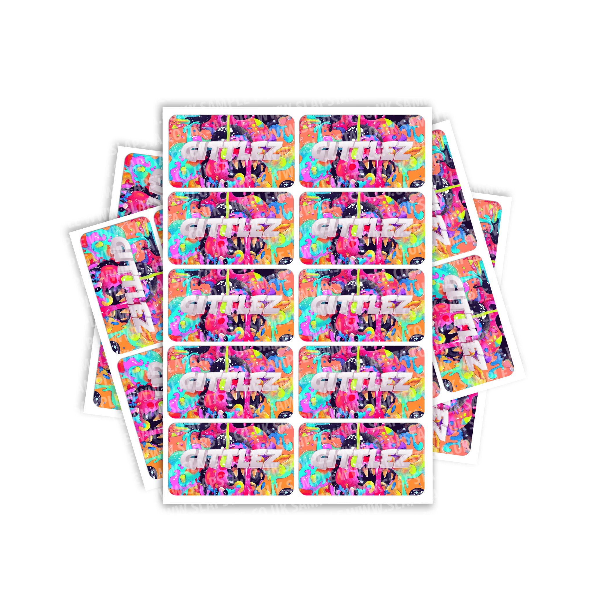 Gittlez gloss vinyl sticker labels. Please choose the size and quantity you require. For help sizing, please view the size guide image or use the measurements provided.