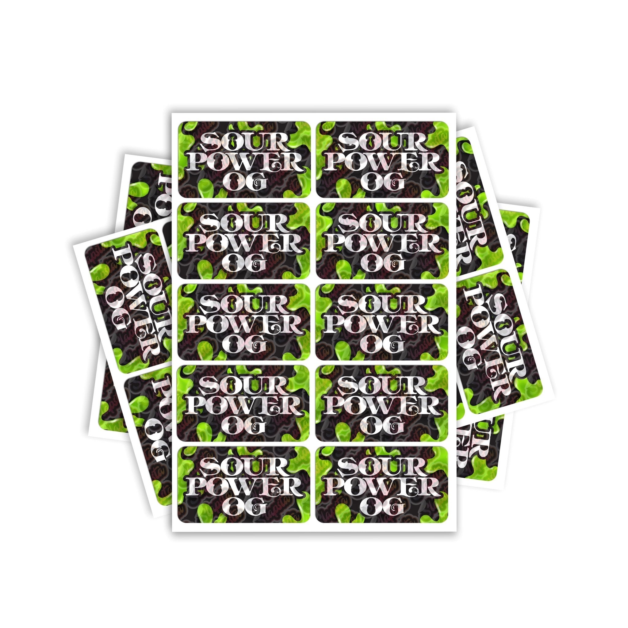 Sour Power OG gloss vinyl sticker labels. Please choose the size and quantity you require. For help sizing, please view the size guide image or use the measurements provided.