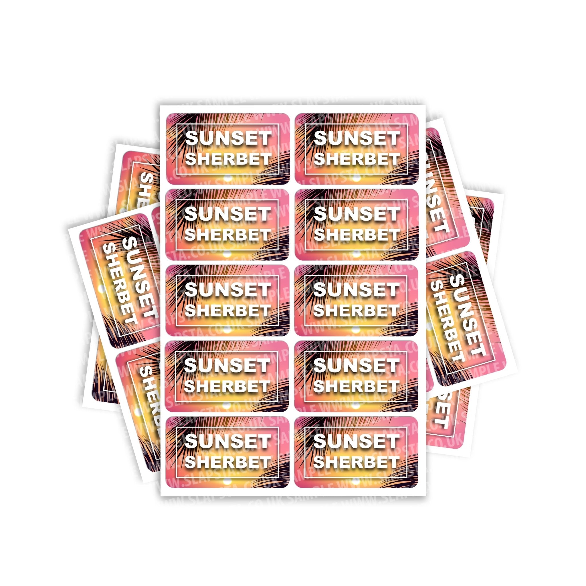 Sunset Sherbet gloss vinyl sticker labels. Please choose the size and quantity you require. For help sizing, please view the size guide image or use the measurements provided.
