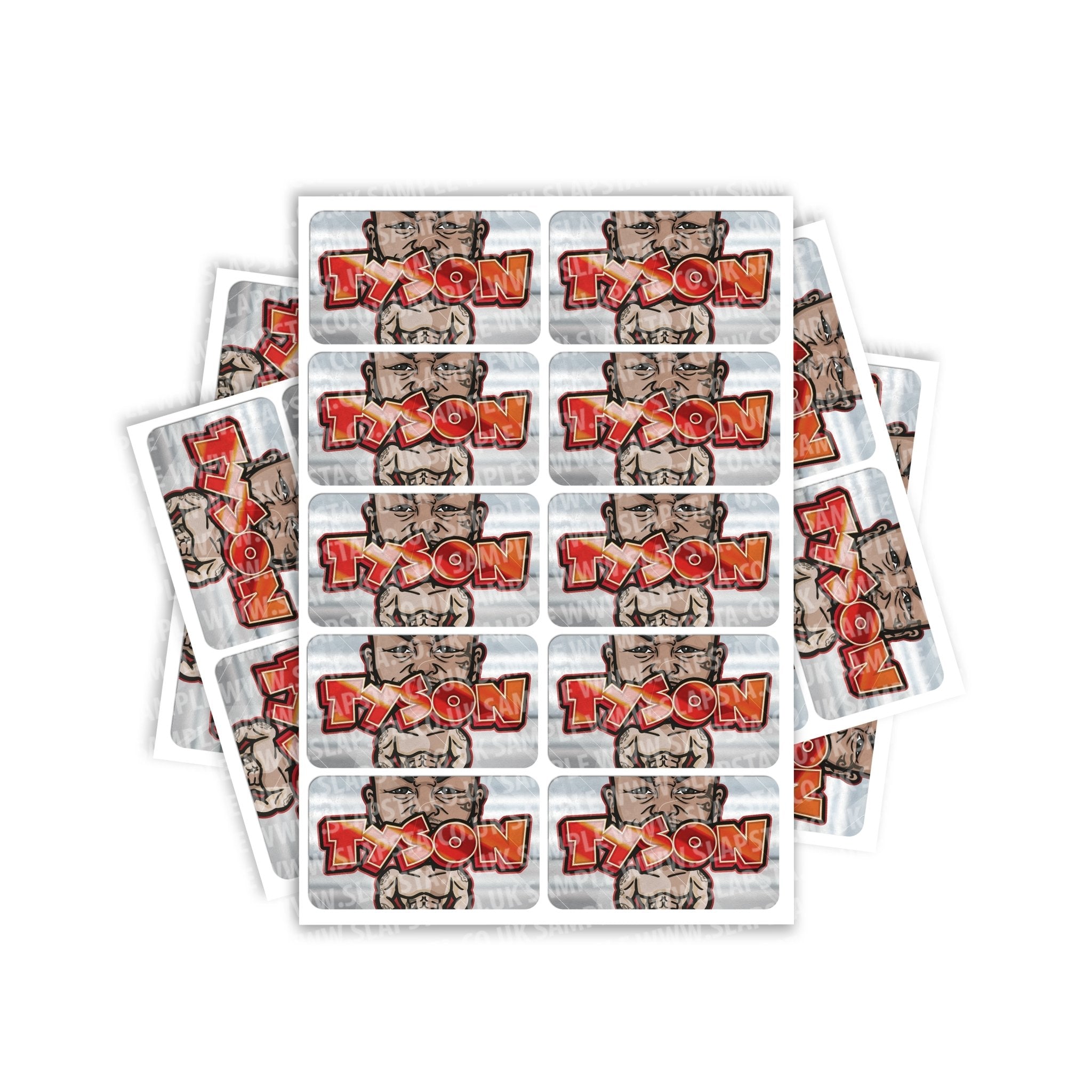 Tyson gloss vinyl sticker labels. Please choose the size and quantity you require. For help sizing, please view the size guide image or use the measurements provided.