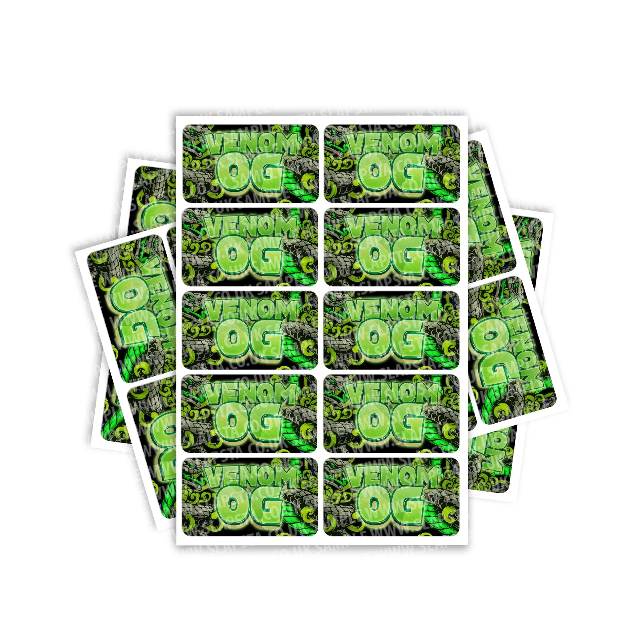 Venom OG gloss vinyl sticker labels. Please choose the size and quantity you require. For help sizing, please view the size guide image or use the measurements provided.
