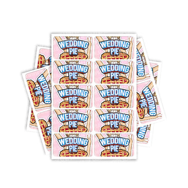 Wedding Pie gloss vinyl sticker labels. Please choose the size and quantity you require. For help sizing, please view the size guide image or use the measurements provided.