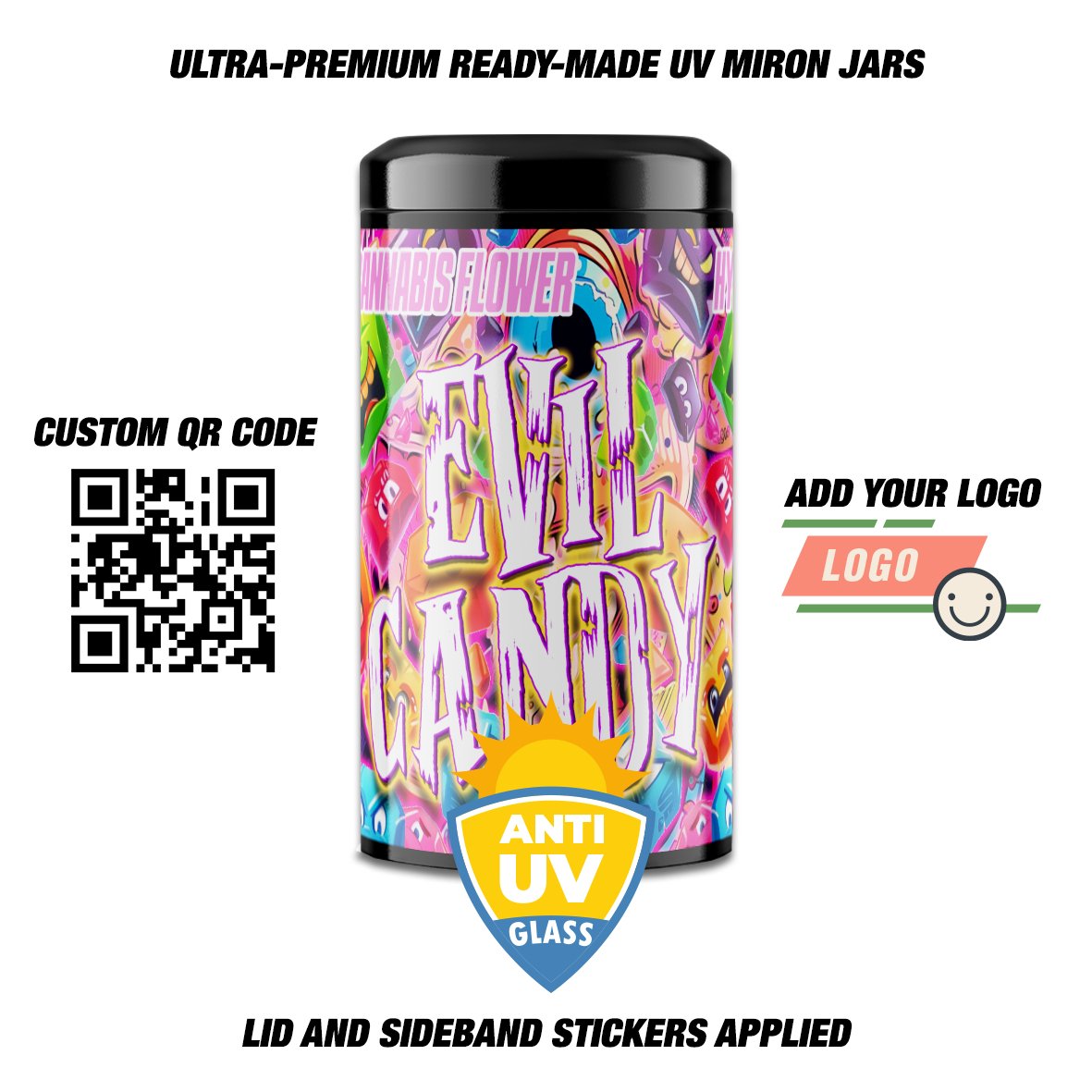 Evil Candy Pre-Labeled Premium UV Miron Glass Curing/Display Jars