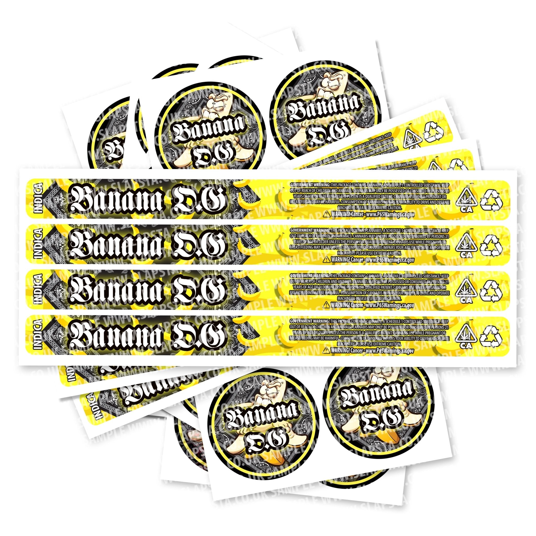 Ready-made Banana OG PRESSITIN strain labels, available to fit all PRESSITIN (self-seal tins) sizes. If you require your labels made to a certain size, please contact us. For bespoke designs, please check out our design section.