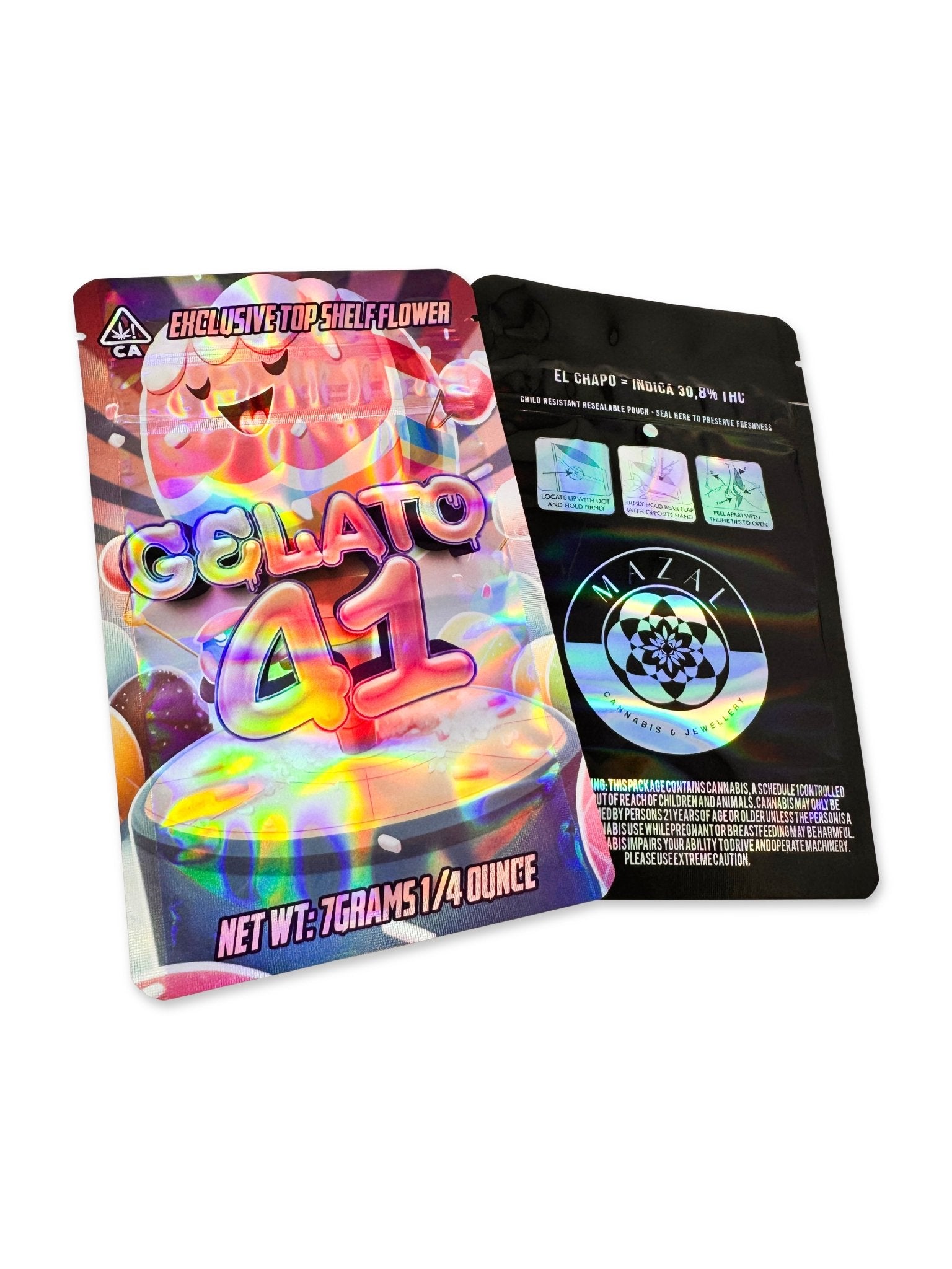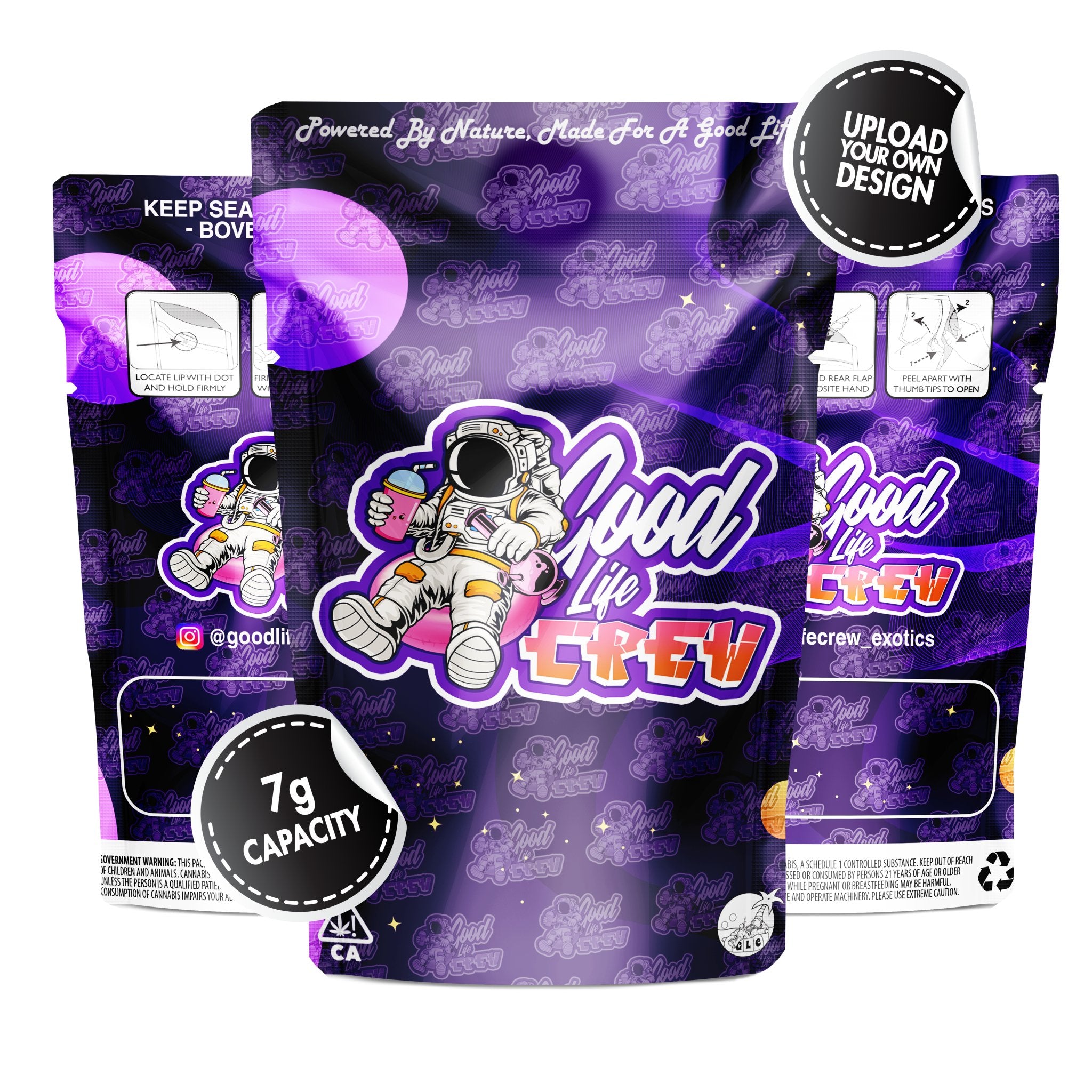 Upgrade your 7g game. No more slapping stickers on blank bags. Get fully custom, direct-print packaging that builds trust instantly. Your product is premium—your bag should be too.