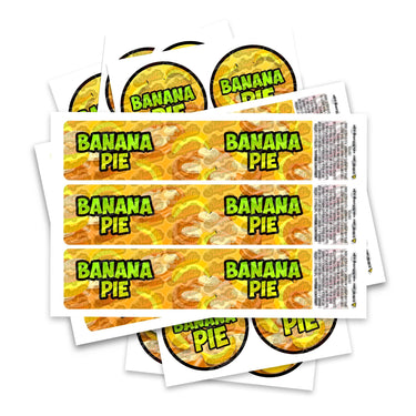 Ready-made Banana Pie strain labels, available to fit our JAR and TAMPER STRIP POT Range. If you require your labels made to a certain size, please contact us. For bespoke designs, please check out our design section.
