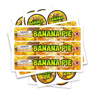 Ready-made Banana Pie strain labels, available to fit our JAR and TAMPER STRIP POT Range. If you require your labels made to a certain size, please contact us. For bespoke designs, please check out our design section.