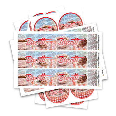 Ready-made Biscotti strain labels, available to fit our JAR and TAMPER STRIP POT Range. If you require your labels made to a certain size, please contact us. For bespoke designs, please check out our design section.