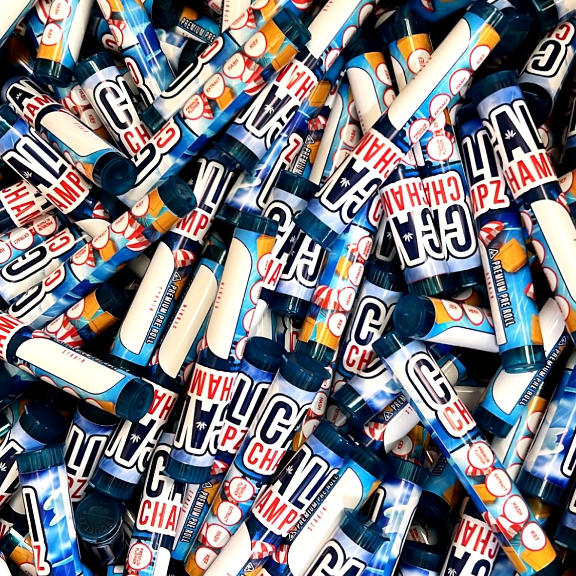 Vinyl Labels Applied To 116mm Pre-Roll 'Pop-Top' Tubes