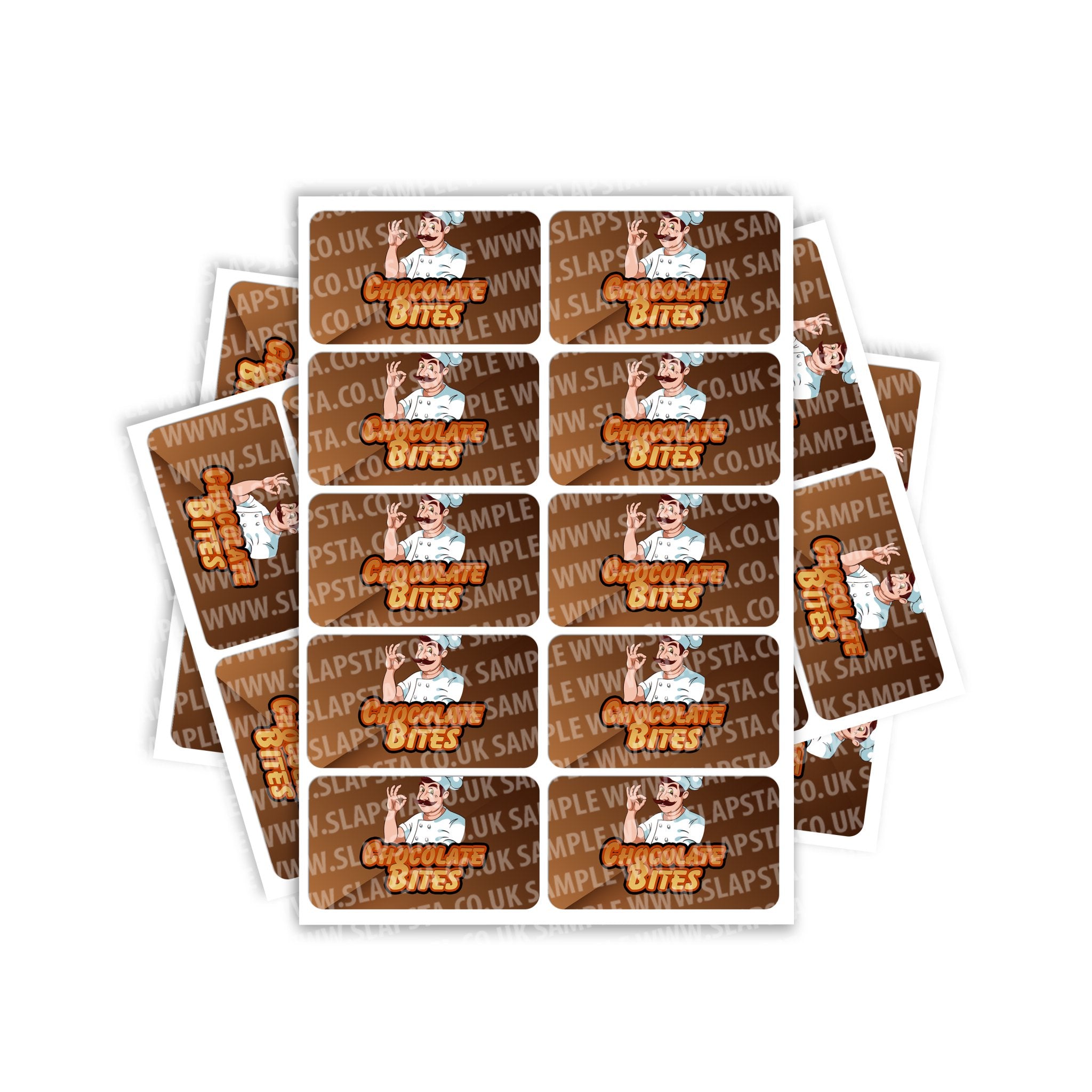 Chocolate Bites gloss vinyl sticker labels. Please choose the size and quantity you require. For help sizing, please view the size guide image or use the measurements provided.
