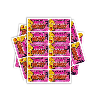Sour Sunset gloss vinyl sticker labels. Please choose the size and quantity you require. For help sizing, please view the size guide image or use the measurements provided.