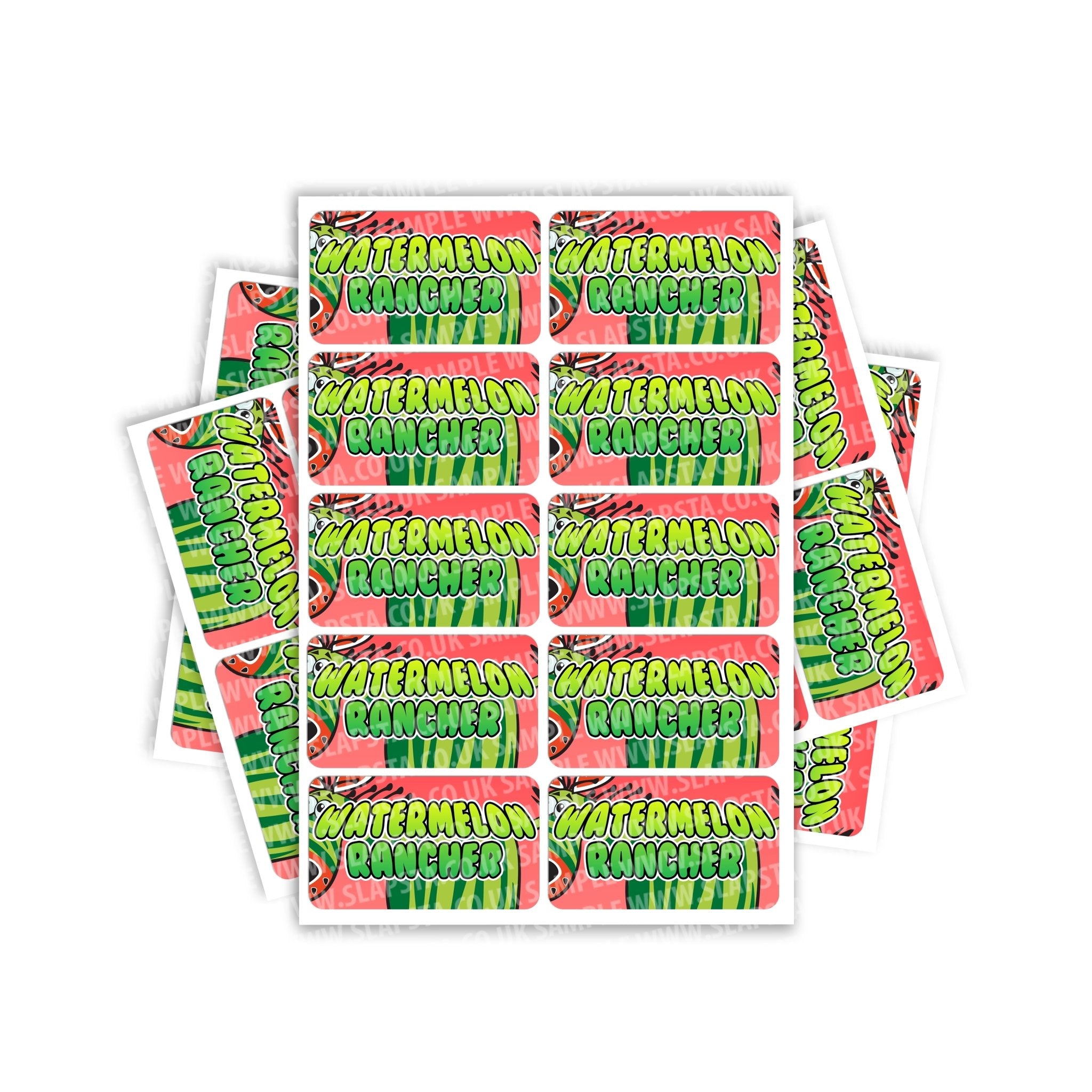 Watermelon Rancher gloss vinyl sticker labels. Please choose the size and quantity you require. For help sizing, please view the size guide image or use the measurements provided.