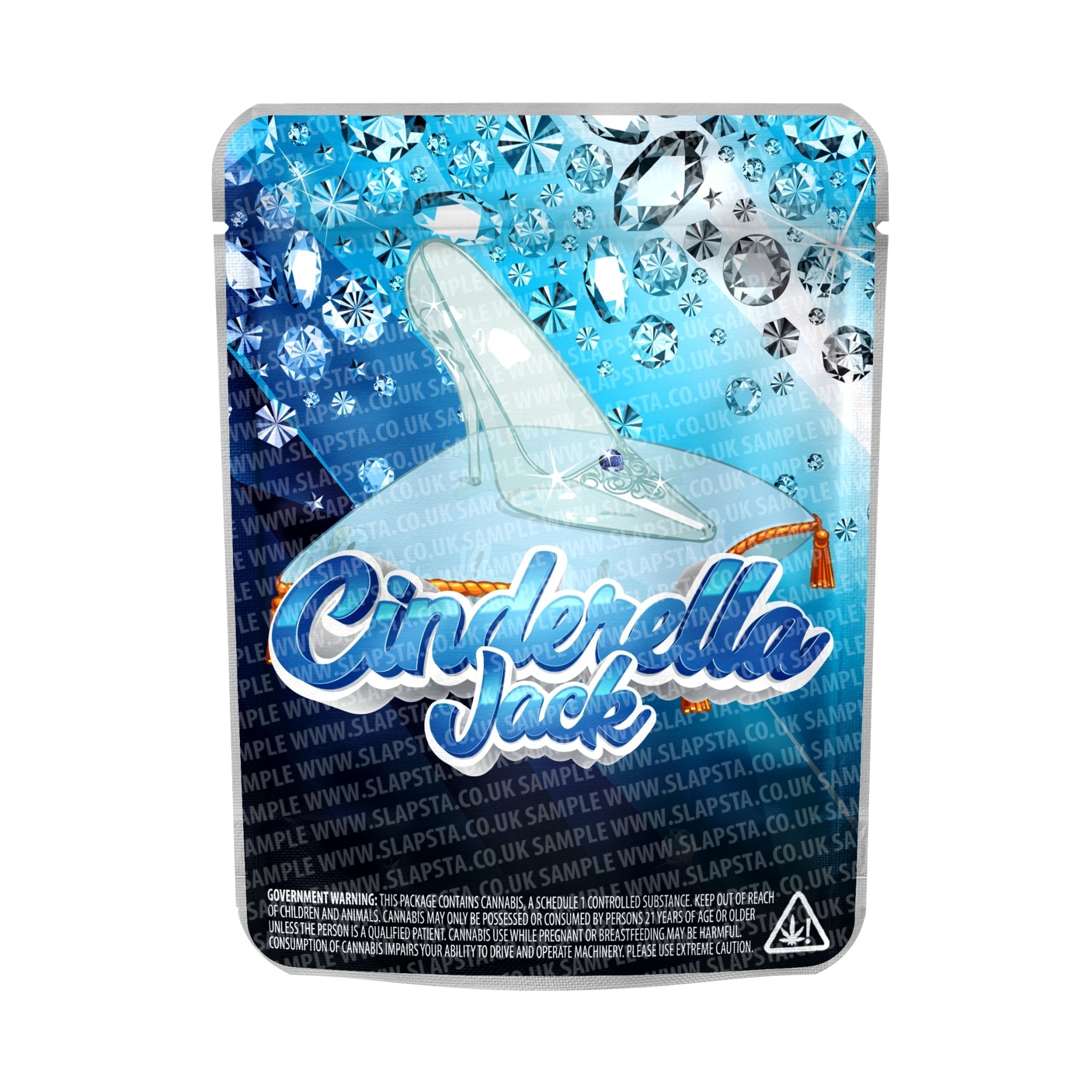 Sachets en mylar refermables et anti-odeurs, avec vinyle Cendrillon Jack autocollant pré-appliqué. Disponible en 3,5 grammes , 7 grammes , 14 grammes et 28 grammes tailles, avec à l'épreuve des enfants option.