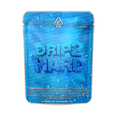 Sachets en mylar refermables et anti-odeurs, avec vinyle Drip To Hard autocollant pré-appliqué. Disponible en 3,5 grammes , 7 grammes , 14 grammes et 28 grammes tailles, avec à l'épreuve des enfants option.