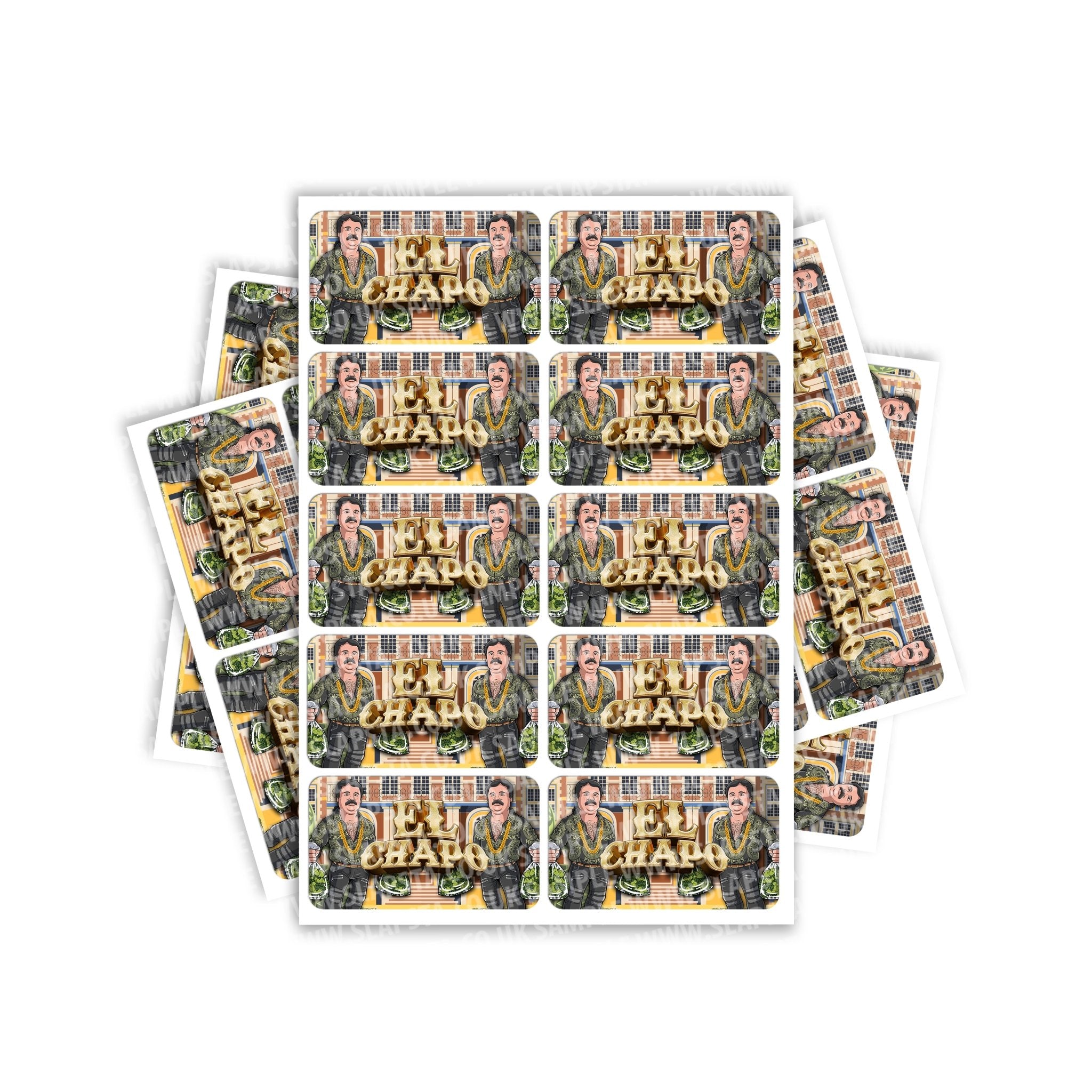 Étiquettes autocollantes en vinyle brillant El Chapo. Veuillez choisir la taille et la quantité dont vous avez besoin. Pour vous aider à déterminer la taille, veuillez consulter l'image du guide des tailles ou utiliser les mesures fournies.
