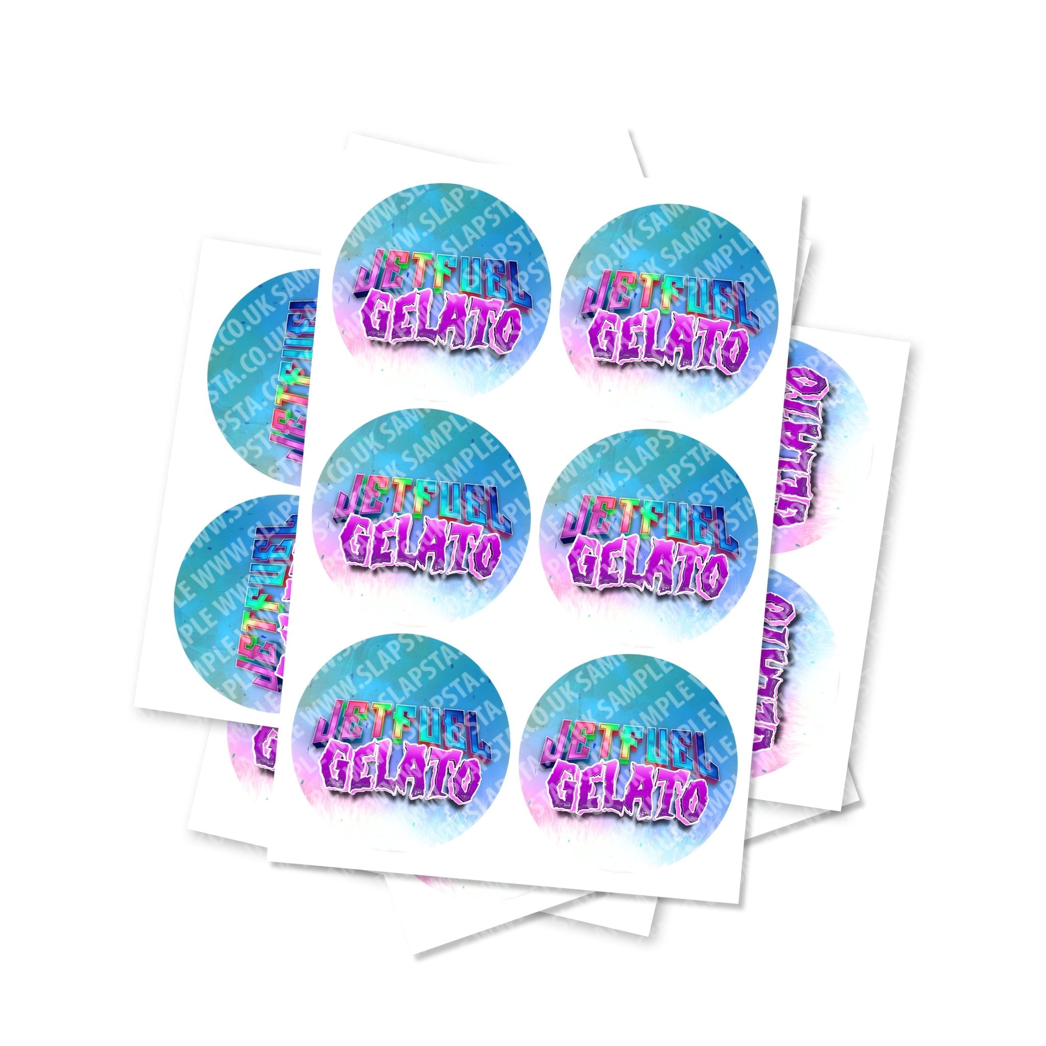 Autocollants circulaires en vinyle brillant Jetfuel Gelato de haute qualité. Veuillez choisir la taille et la quantité dont vous avez besoin dans le menu déroulant.