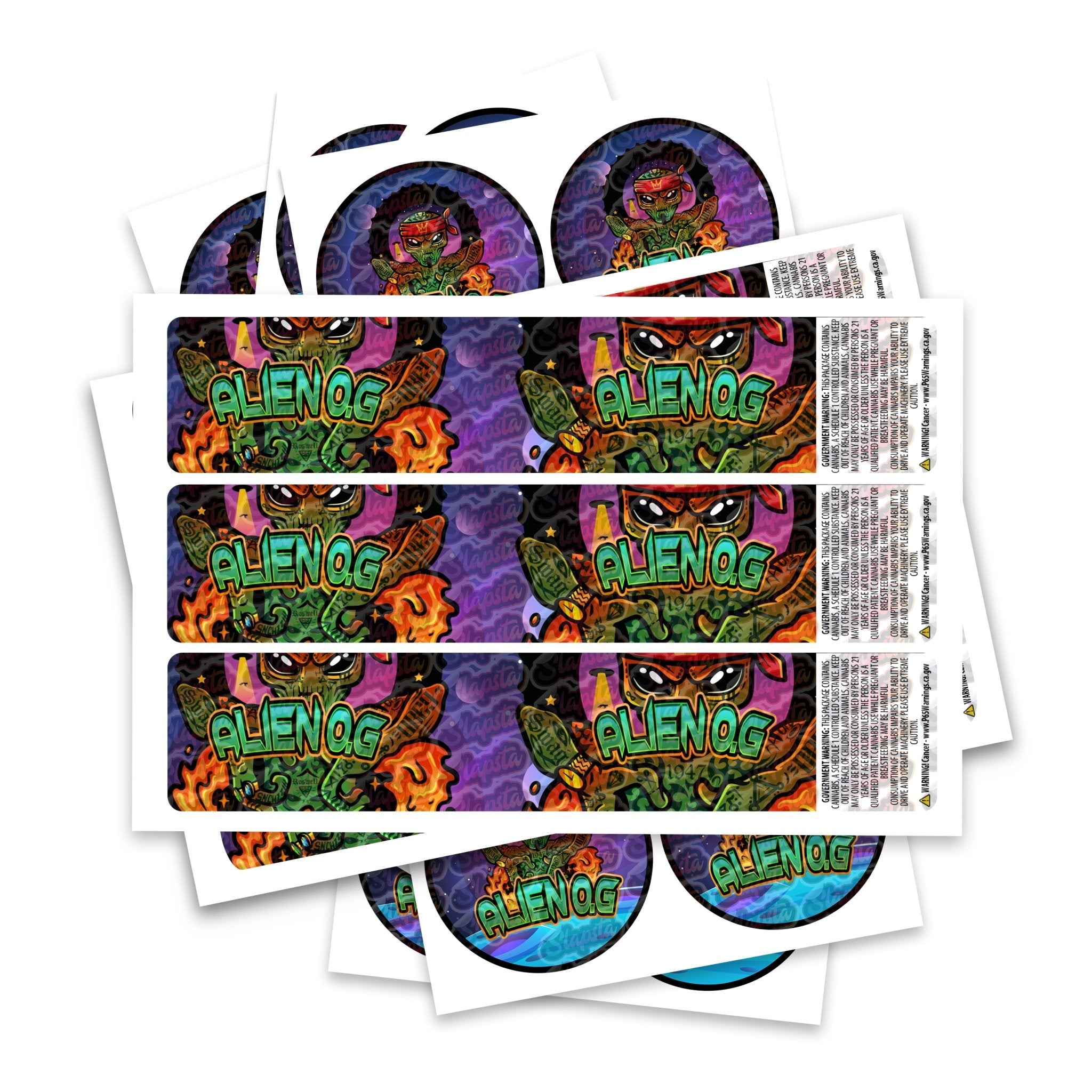 Étiquettes prêtes à l'emploi pour la variété Alien OG, disponibles pour s'adapter à notre gamme de pots JAR et TAMPER STRIP POT. Si vous souhaitez que vos étiquettes soient fabriquées dans une certaine taille, veuillez nous contacter. Pour des conceptions sur mesure, veuillez consulter notre section conception.