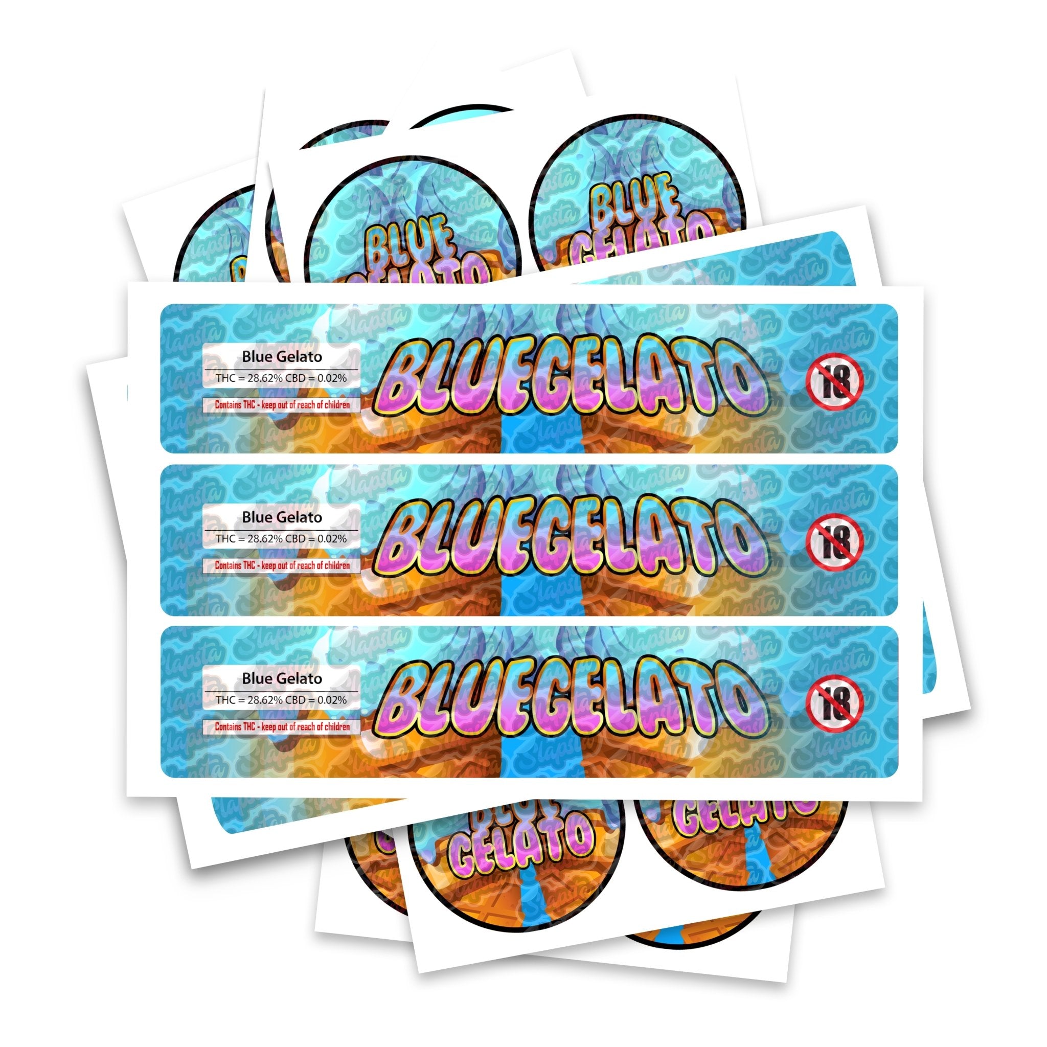 Étiquettes prêtes à l'emploi pour la gamme Blue Gelato, disponibles pour s'adapter à notre gamme de pots et de pots à bande de sécurité. Si vous souhaitez que vos étiquettes soient fabriquées dans une certaine taille, veuillez nous contacter. Pour des conceptions sur mesure, veuillez consulter notre section conception.