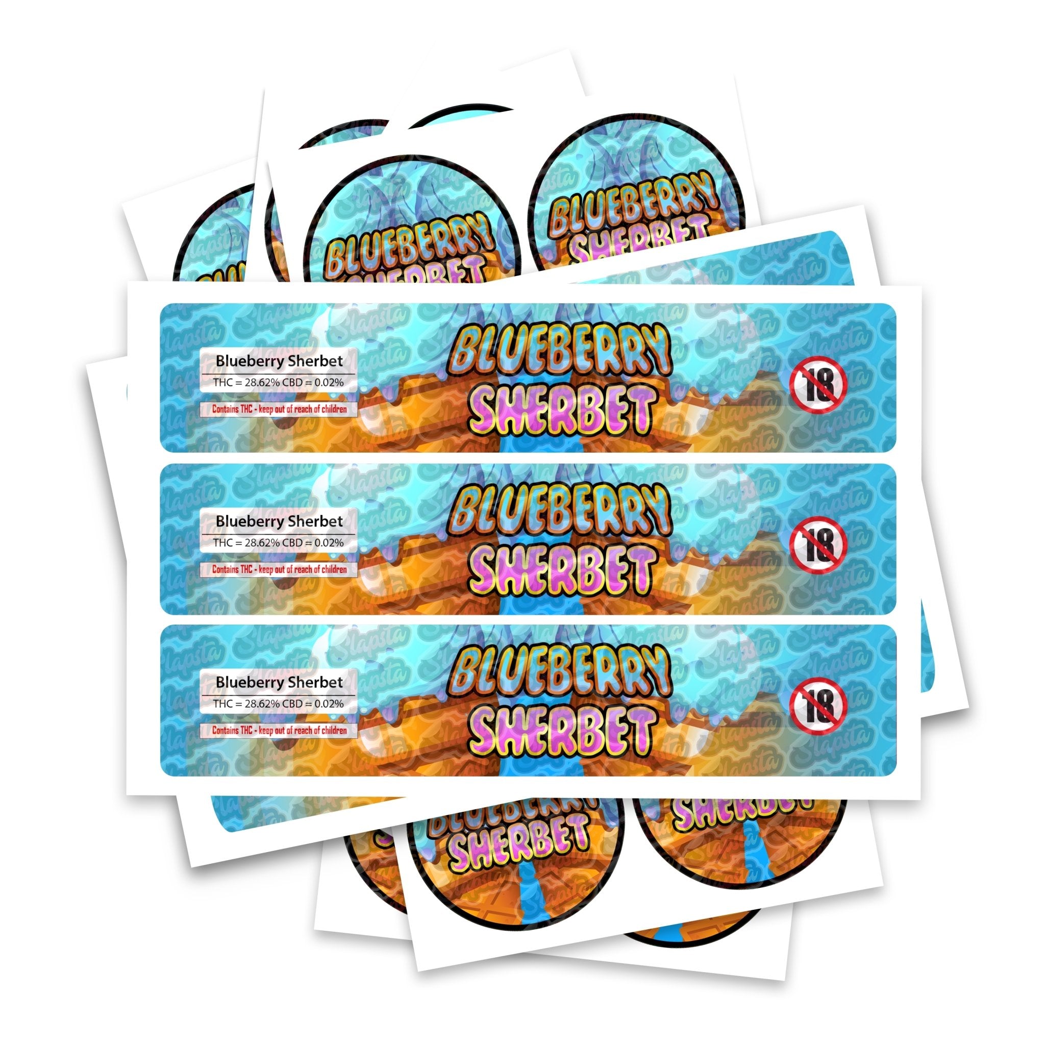 Étiquettes de variétés de sorbet aux bleuets prêtes à l'emploi, disponibles pour s'adapter à notre gamme de pots et de pots à bande inviolable. Si vous souhaitez que vos étiquettes soient fabriquées dans une certaine taille, veuillez nous contacter. Pour des conceptions sur mesure, veuillez consulter notre section conception.
