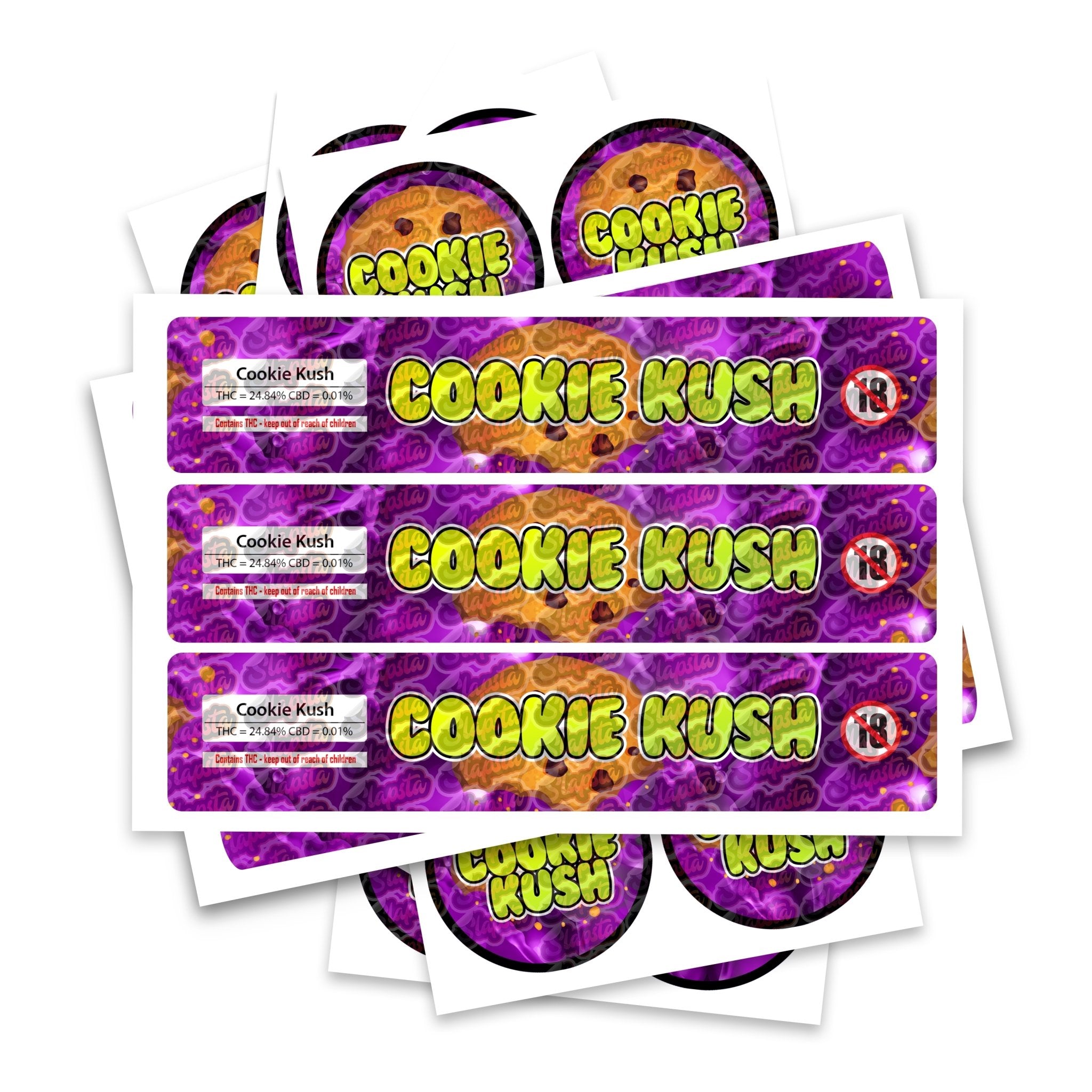 Étiquettes de variétés Cookie Kush prêtes à l'emploi, disponibles pour s'adapter à notre gamme de pots JAR et TAMPER STRIP POT. Si vous souhaitez que vos étiquettes soient fabriquées dans une certaine taille, veuillez nous contacter. Pour des designs sur mesure, veuillez consulter notre section design.