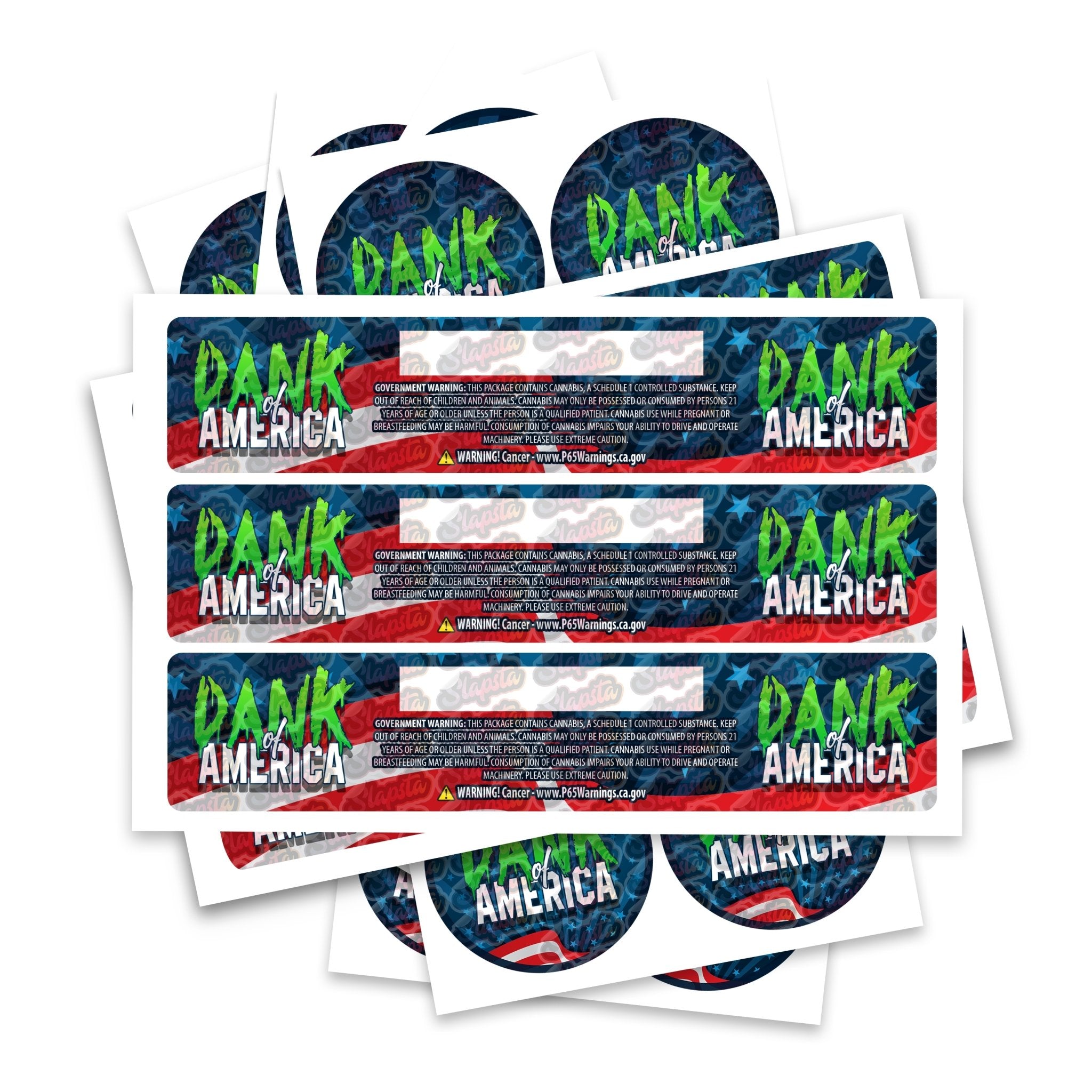 Étiquettes de souches Dank Of America prêtes à l'emploi, disponibles pour s'adapter à notre gamme de pots JAR et TAMPER STRIP POT. Si vous souhaitez que vos étiquettes soient fabriquées dans une certaine taille, veuillez nous contacter. Pour des conceptions sur mesure, veuillez consulter notre section conception.