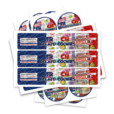 Étiquettes de biscuits à la glace française prêtes à l'emploi, disponibles pour s'adapter à notre gamme de pots et de pots à bande de sécurité. Si vous souhaitez que vos étiquettes soient fabriquées dans une certaine taille, veuillez nous contacter. Pour des conceptions sur mesure, veuillez consulter notre section conception.