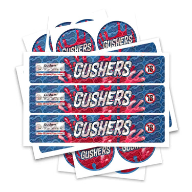 Étiquettes de souches Gushers prêtes à l'emploi, disponibles pour s'adapter à notre gamme de pots JAR et TAMPER STRIP POT. Si vous souhaitez que vos étiquettes soient fabriquées dans une certaine taille, veuillez nous contacter. Pour des conceptions sur mesure, veuillez consulter notre section conception.