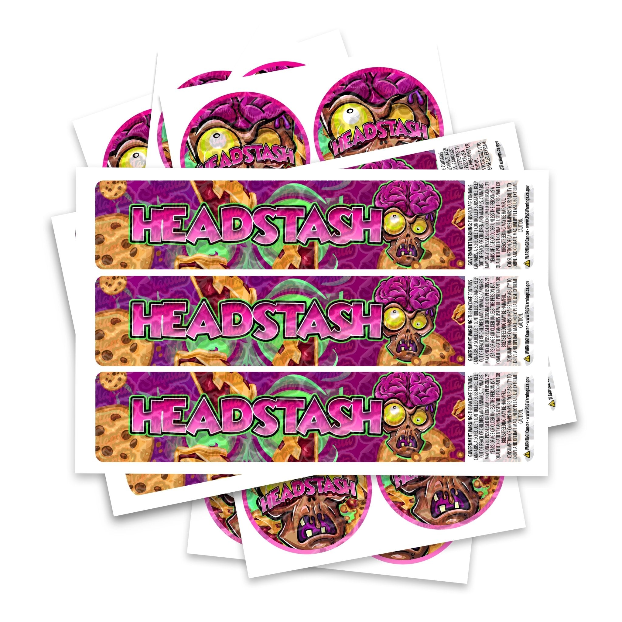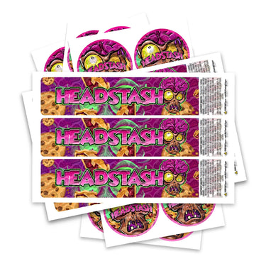 Étiquettes de souches Headstash prêtes à l'emploi, disponibles pour s'adapter à notre gamme de pots JAR et TAMPER STRIP POT. Si vous souhaitez que vos étiquettes soient fabriquées dans une certaine taille, veuillez nous contacter. Pour des conceptions sur mesure, veuillez consulter notre section conception.