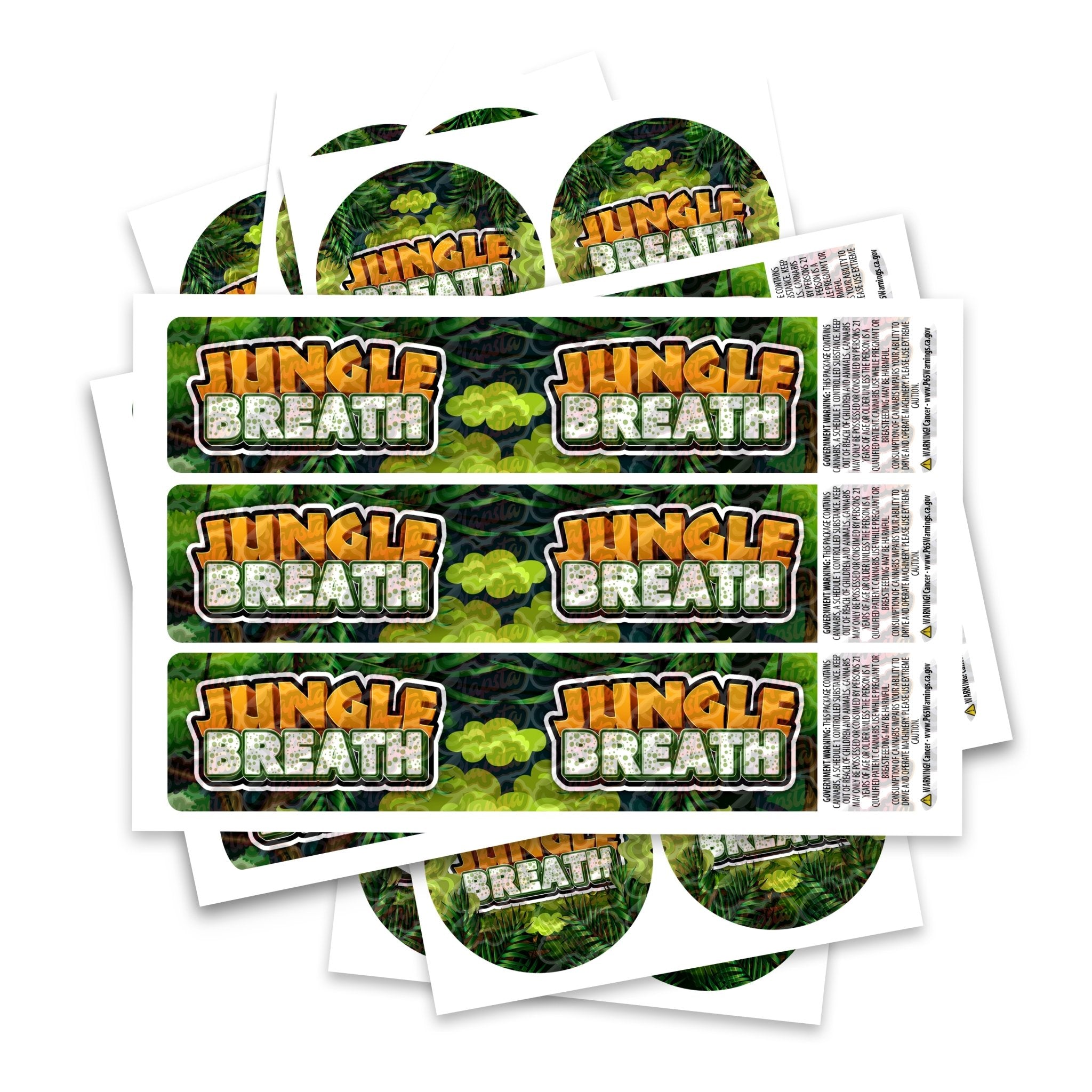 Étiquettes prêtes à l'emploi pour la variété Jungle Breath, disponibles pour s'adapter à notre gamme de pots JAR et TAMPER STRIP POT. Si vous souhaitez que vos étiquettes soient fabriquées dans une certaine taille, veuillez nous contacter. Pour des conceptions sur mesure, veuillez consulter notre section conception.