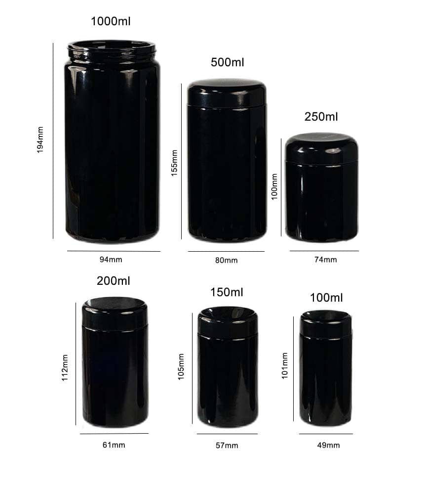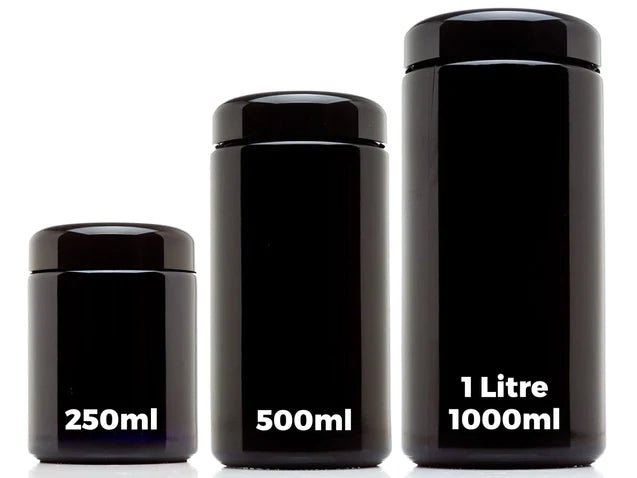 Les pots ultra-premium de 250 ml (une demi-once de fleur séchée) noirs Miron bloquant la lumière UV préservent la fraîcheur et la puissance de votre fleur plus longtemps.