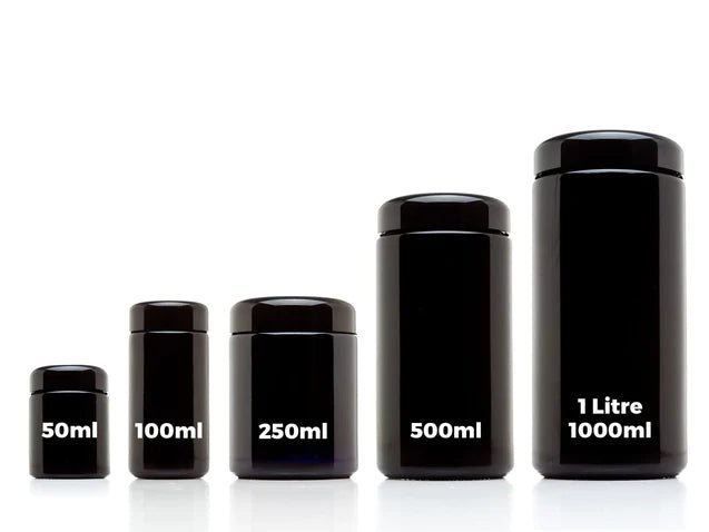 Les pots Miron UV ultra-premium de 14 grammes (500 ml/une demi-once de fleur séchée) noirs bloquent la lumière, préservent la fraîcheur et la puissance de vos fleurs, produits comestibles ou pré-roulés plus longtemps.
