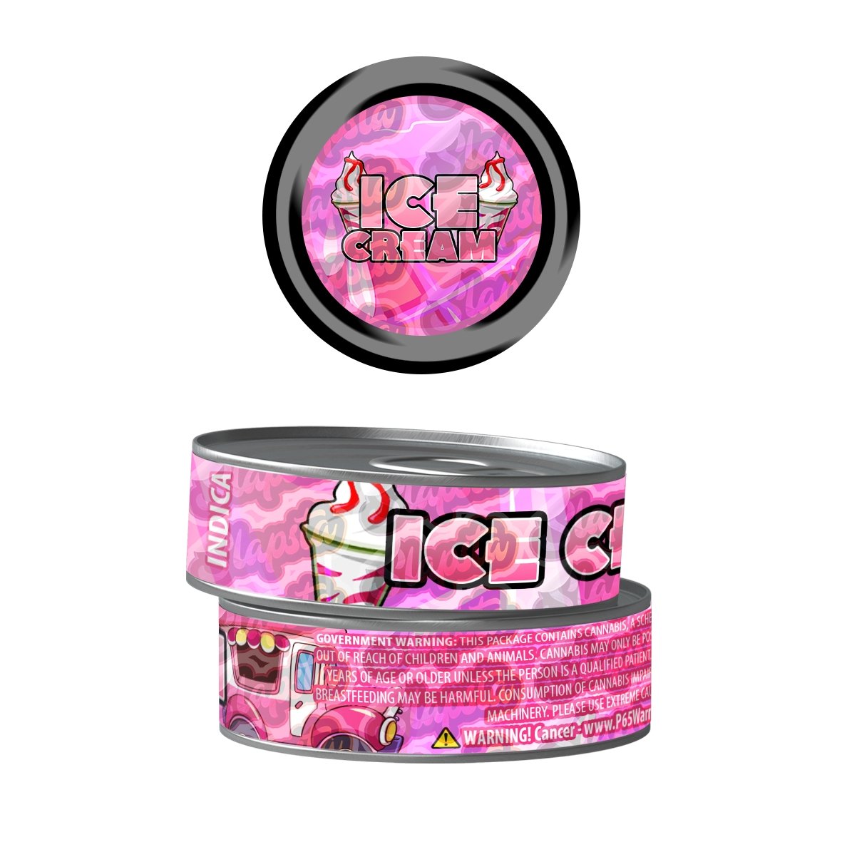 Boîtes pré-étiquetées de 100 ml avec anneau de fermeture facile et bouchons en plastique. Parfait pour 3,5 grammes (1/8 once) de fleurs séchées.