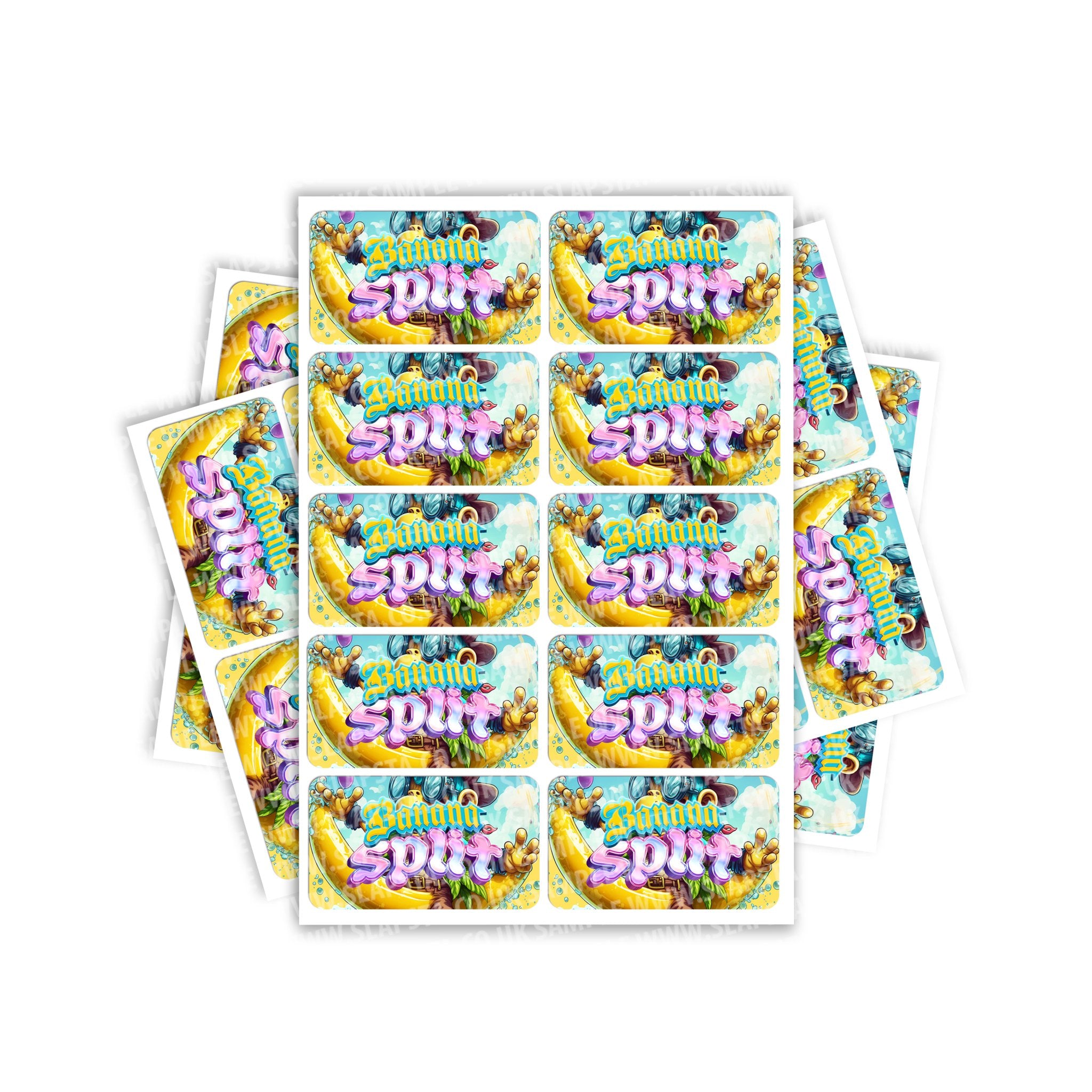 Étiquettes autocollantes en vinyle brillant Banana Split. Veuillez choisir la taille et la quantité dont vous avez besoin. Pour vous aider à déterminer la taille, veuillez consulter l'image du guide des tailles ou utiliser les mesures fournies.