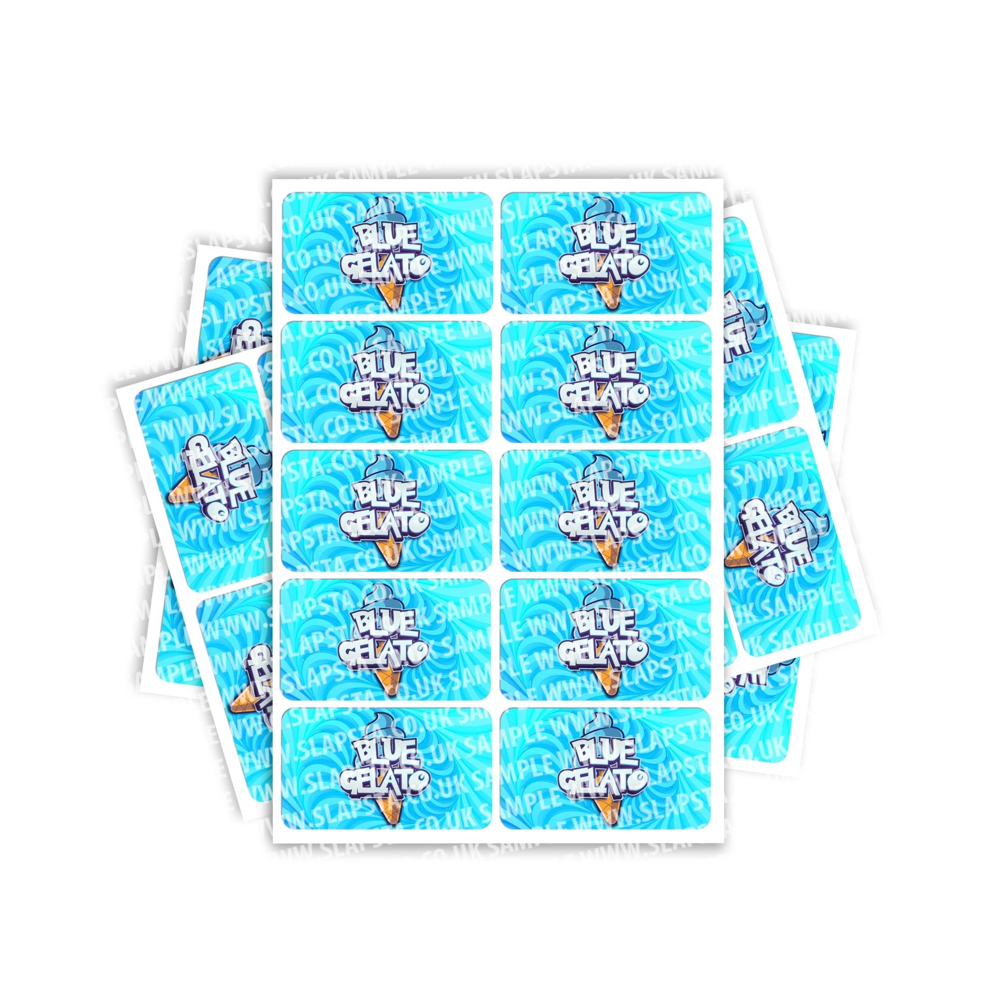 Étiquettes pré-enroulées rectangulaires pour glaces bleues