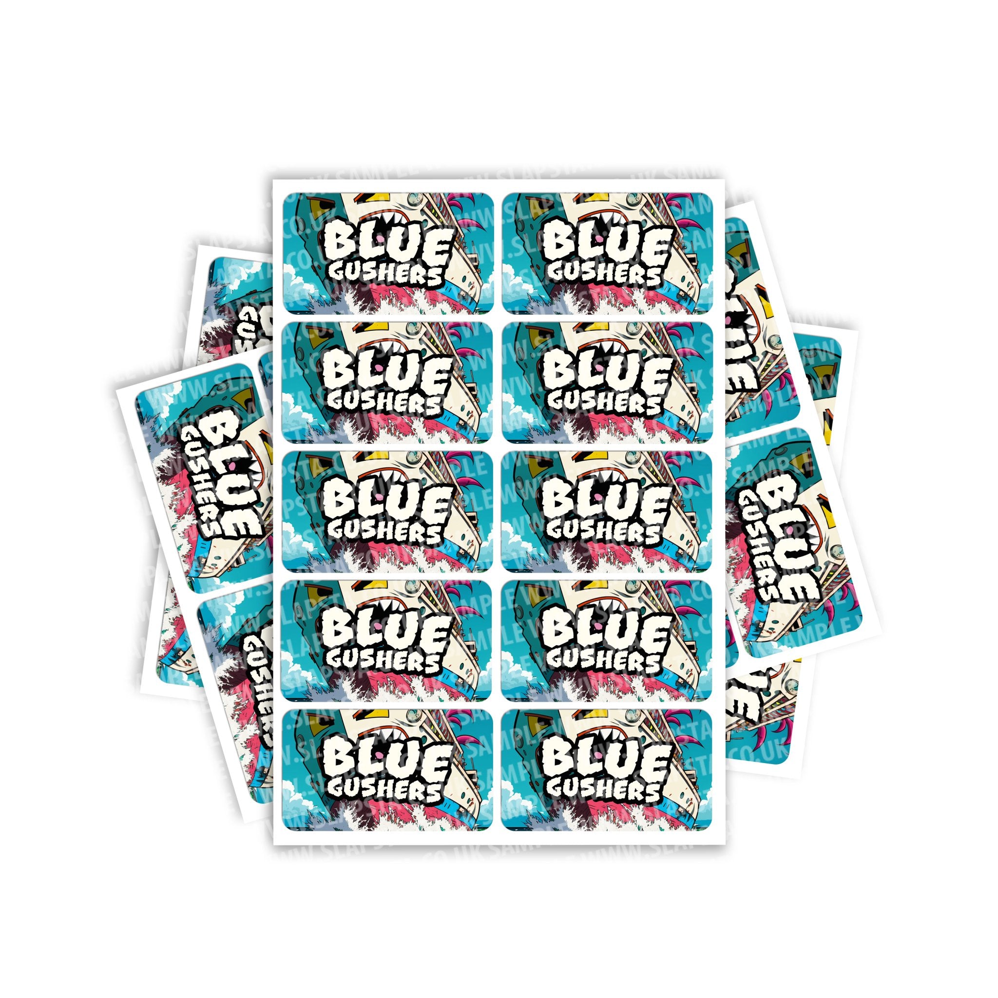 Étiquettes autocollantes en vinyle brillant Blue Gushers. Veuillez choisir la taille et la quantité dont vous avez besoin. Pour obtenir de l'aide sur le choix des tailles, veuillez consulter l'image du guide des tailles ou utiliser les mesures fournies.