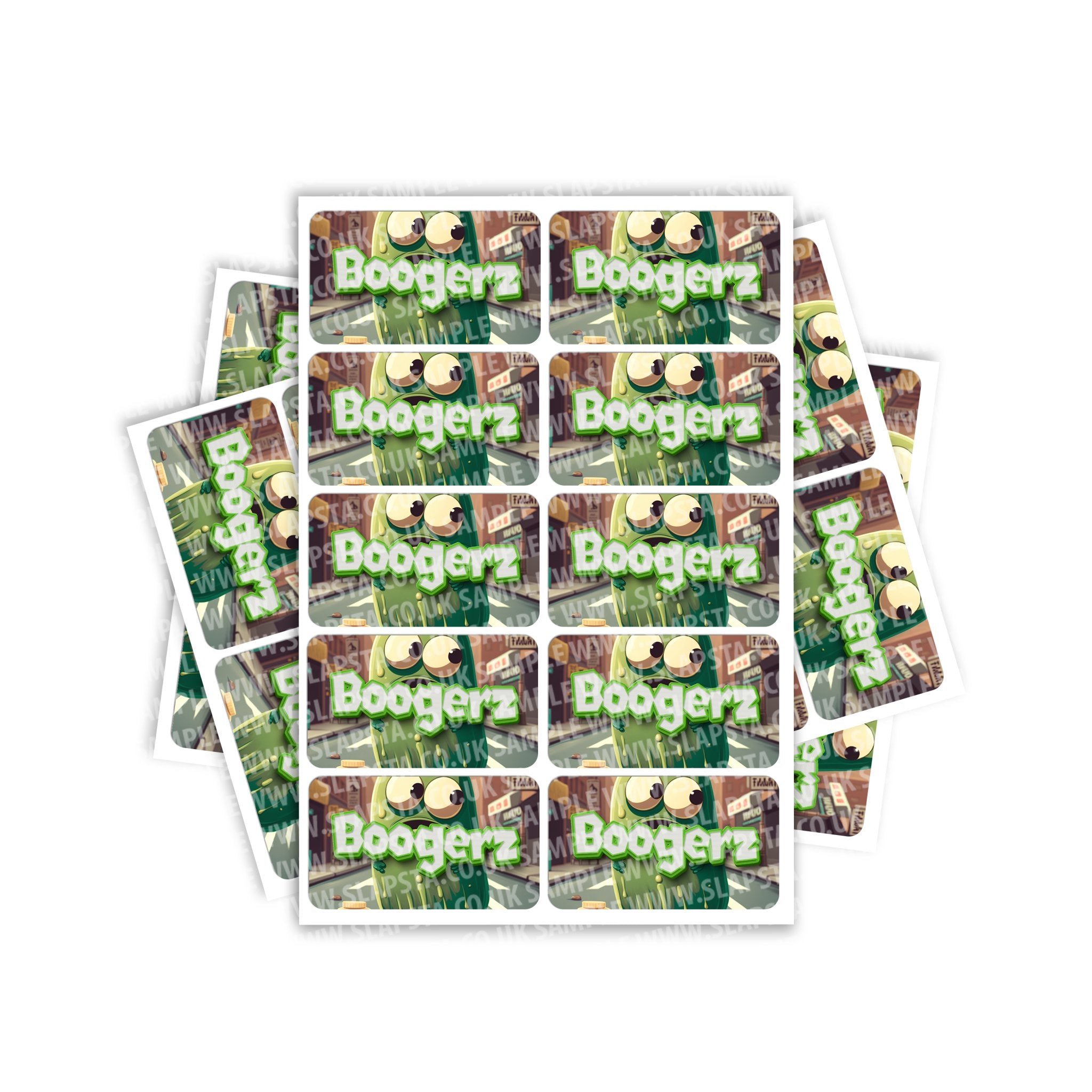 Étiquettes autocollantes en vinyle brillant Boogerz. Veuillez choisir la taille et la quantité dont vous avez besoin. Pour obtenir de l'aide sur le choix des tailles, veuillez consulter l'image du guide des tailles ou utiliser les mesures fournies.