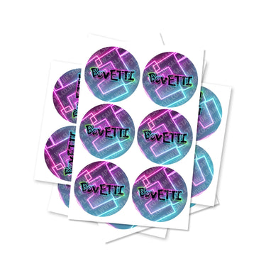 Autocollants circulaires en vinyle brillant Bovetti de haute qualité. Veuillez choisir la taille et la quantité souhaitées dans le menu déroulant.