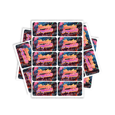Étiquettes autocollantes en vinyle brillant Candy Eruption. Veuillez choisir la taille et la quantité dont vous avez besoin. Pour vous aider à déterminer la taille, veuillez consulter l'image du guide des tailles ou utiliser les mesures fournies.