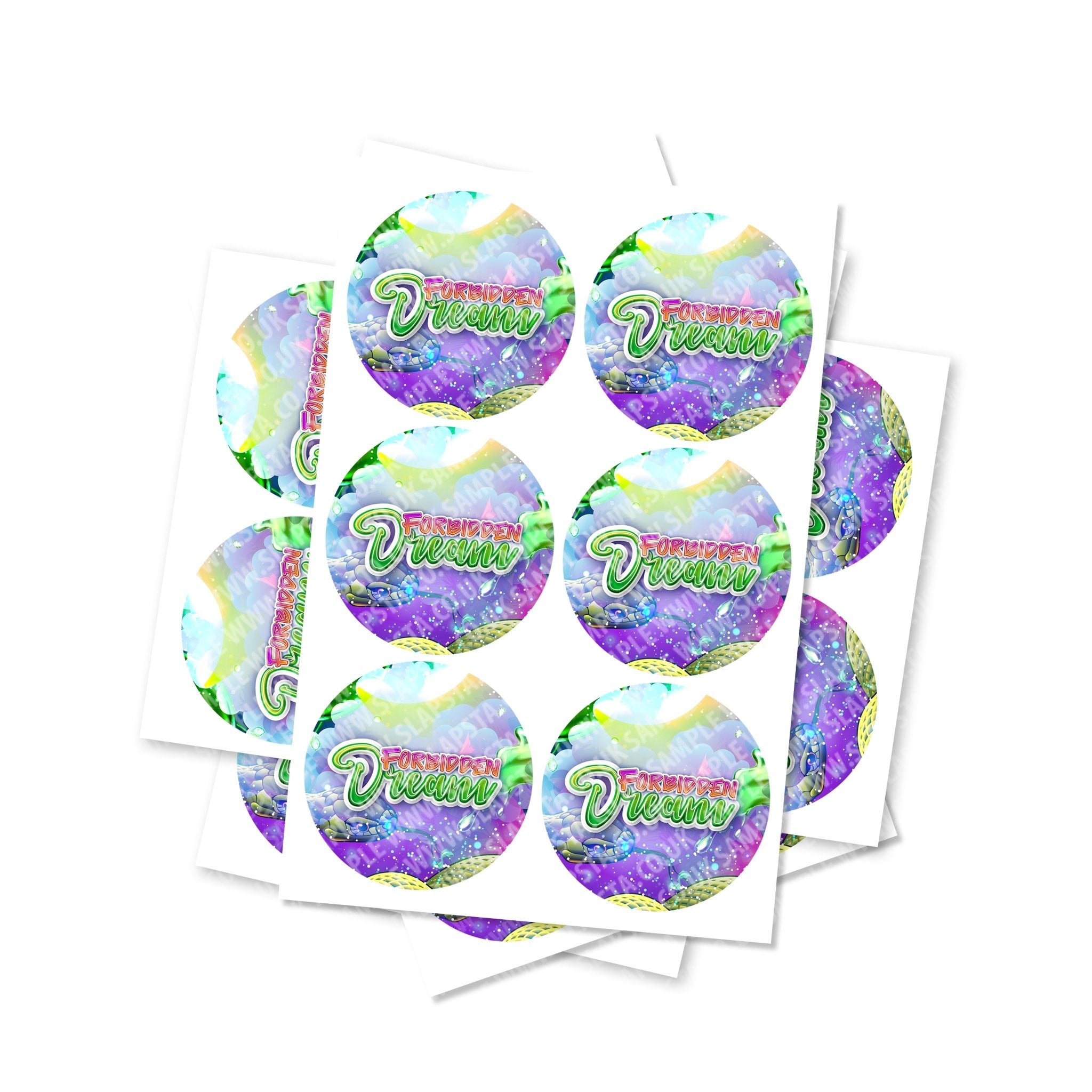 Autocollants circulaires en vinyle brillant Forbidden Dream de haute qualité. Veuillez choisir la taille et la quantité dont vous avez besoin dans le menu déroulant.